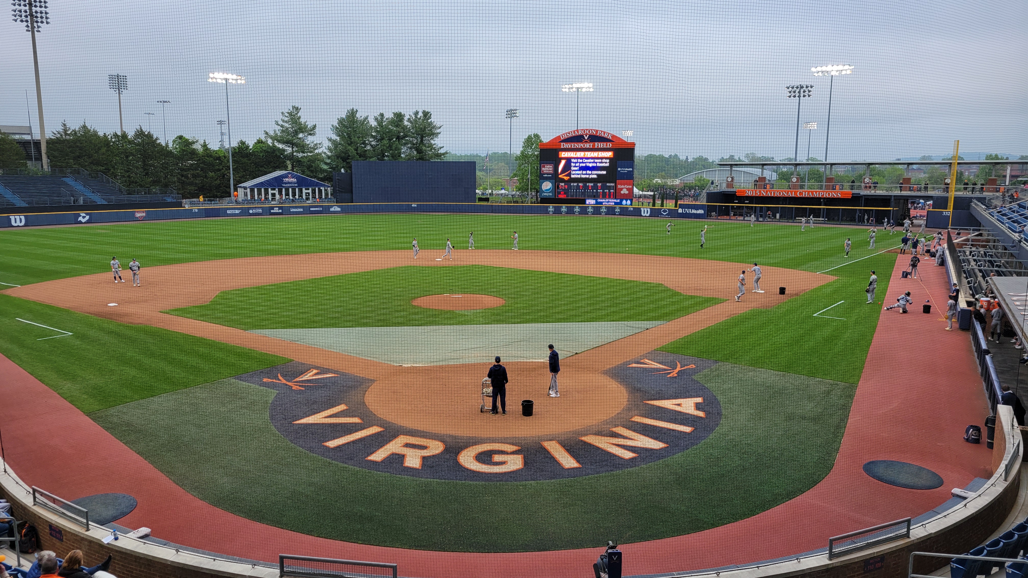 In the shadows of the Blue Ridge Mountains in Central Virginia is Charlottesville, a city of 46,000 steeped in history and beautiful architecture inspired by Thomas Jefferson. C’Ville is the former home to two other presidents and it has a decent array of dining, shopping and entertainment. The area is also near several wineries and not too far from Shenandoah National Park. While Charlottesville makes for a great weekend stop, it’s important to understand that this was a place with an awful history of segregation and racism. Like much of the south, it was even more stark here and recently brought to light when white supremacist groups infiltrated the city in 2017 after a vote to take a confederate statue down. On the west side of the city is The University of Virginia, a prestigious and historic school with 25,000 students. Jefferson’s University is well designed with a program and campus experience that is highly regarded. Their athletics program is pretty good too as the school has won the Capital One Cup a few times for most successful athletic program in a season. You can now count baseball in that category too. After the Cavaliers made the NCAA Tournament only 3 times during the 1900s, they have become a mainstay during this century. Hosting a Regional during the NCAA Tournament is the pinnacle for a college baseball program (that means you are Top 16 in the country) and they have done that several times. Virginia also has made it to the College World Series 6 times (including last season) and they won it all in 2015. Manager Brian O’Connor has turned UVA into a perennial contender in the college baseball world and they have a quality facility to go with it. The ballpark was remade in 2002 and a notable renovation in 2018 led to the official name of Disharoon Park at Davenport Field that honors financial contributors.