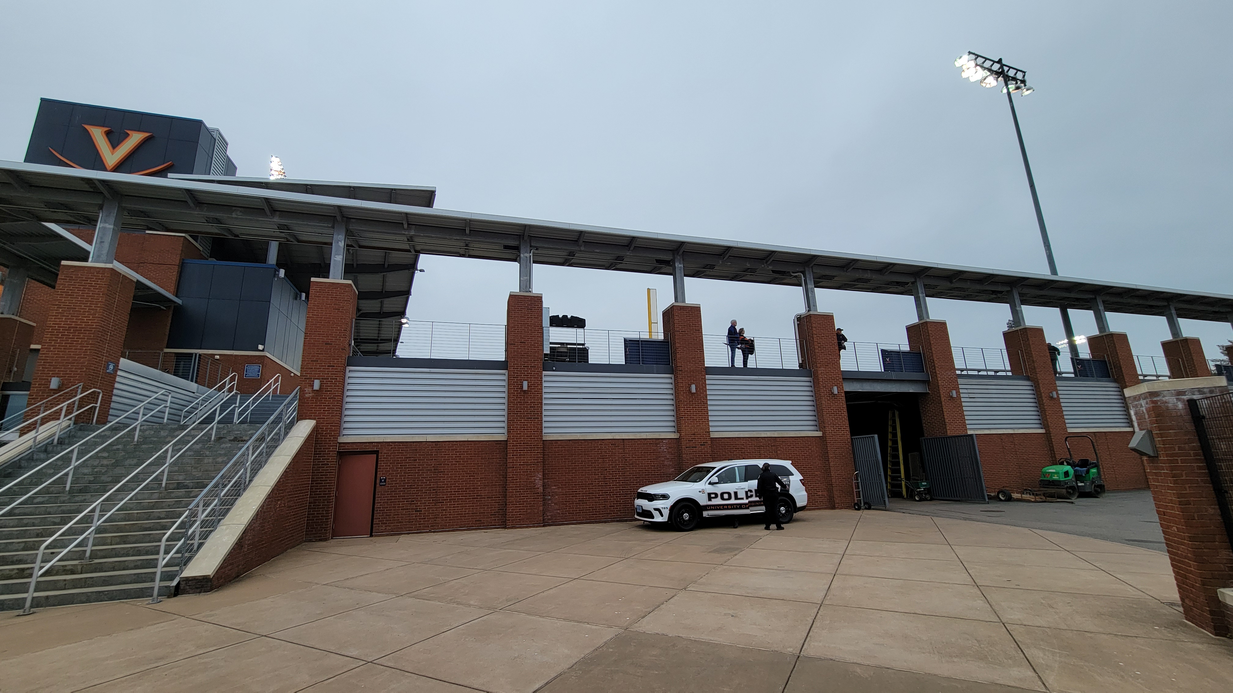 It’s a tepid introduction to the stadium as the main entry is placed well away from Disharoon Park. The metal detectors, bag check and ticket scanners are located next to the Track Stadium at ground level. You then wind your way along sidewalks between other sports facilities before reaching the ballpark set furthest in the back. The path leads you to the outfield seating and you don’t really get a good look at the structure of the stadium from this vantage point as there is almost no access behind home plate. In fact, if you were to try and peek from this direction via Old Ivy Rd, scores of trees will mostly block the exterior view. At least the back of the scoreboard is well decorated and where other building elements can be seen, it is brick.