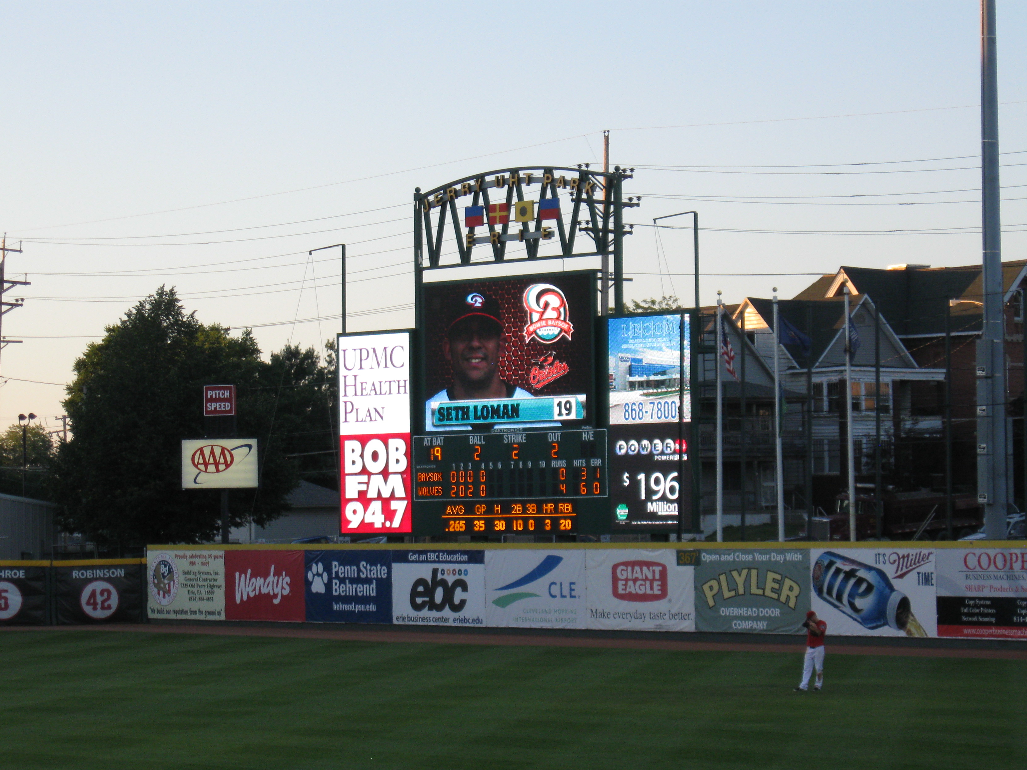 My return in 2013 featured new pieces in this category as a small game info graphic was on top of the arena and the right-field board was completely replaced. The change led to a decent-sized video screen, while they kept some sort of visual and logo at the top denoting Jerry Uht Park and the marine city of Erie.