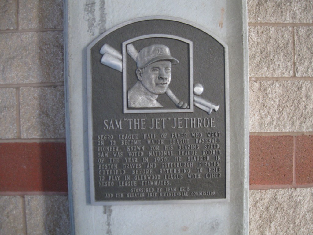 Concourse wall displays feature some elusive plaques that honor various people. Three of them are for front office folks and politicians that helped keep Erie baseball going in the 1950s and aided in the city’s new ballpark. The other is for Sam Jethroe, a former Negro League and Major League star who settled in Erie after his playing days. His #5 is retired, taking a place on the outfield wall next to Jackie Robinson’s #42. Division Championship banners are located on the suite-level wall.