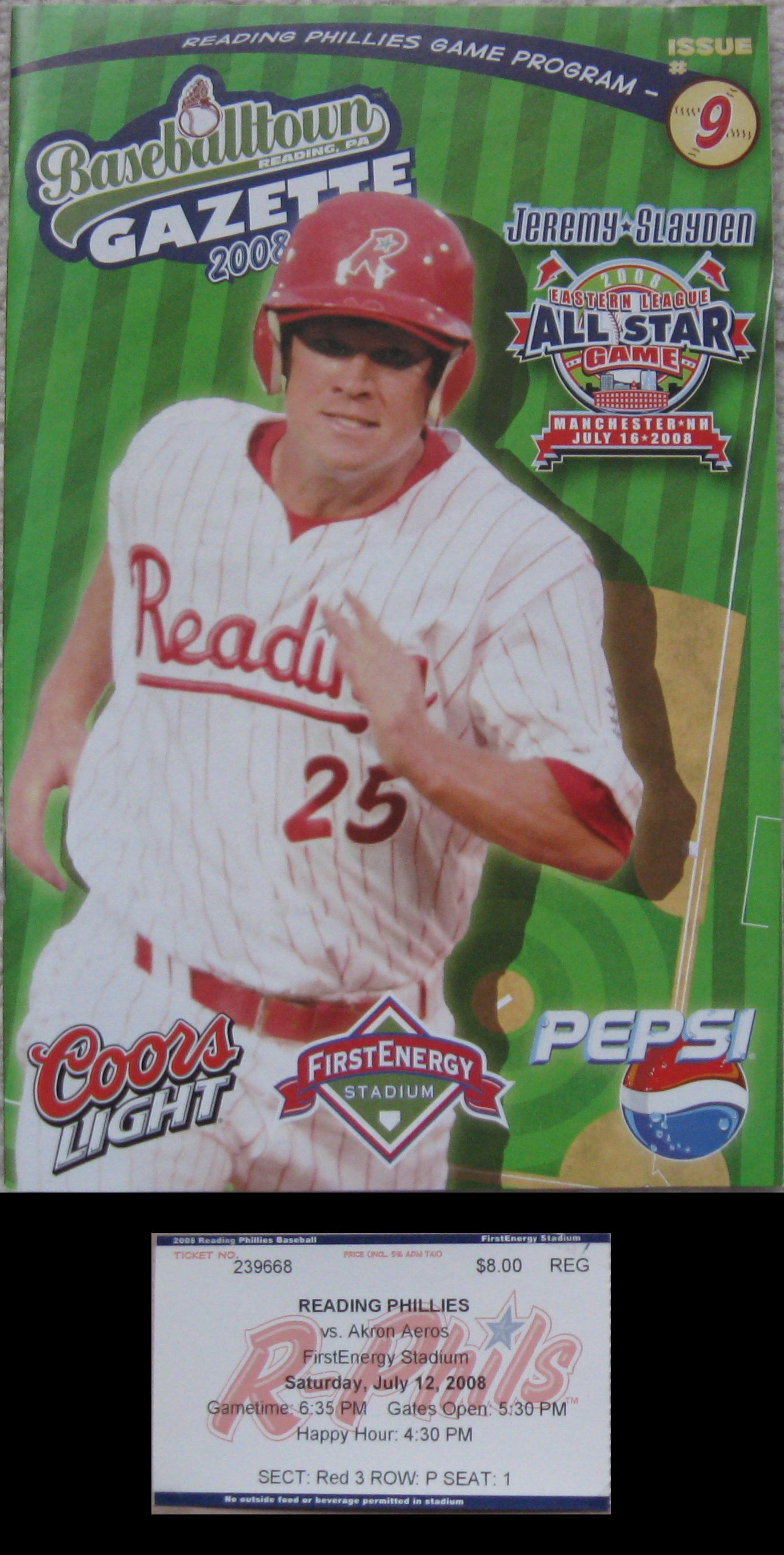Struggling Brett Myers, sent down from Philadelphia, promptly gave up a home run on the very first pitch of the ballgame. Not the best of starts. After two more Akron runs in the early going, Myers settled down and struck out 10. However, Reading could not put anything together offensively until the ninth inning, when they nearly rallied before striking out with the tying runner on second.