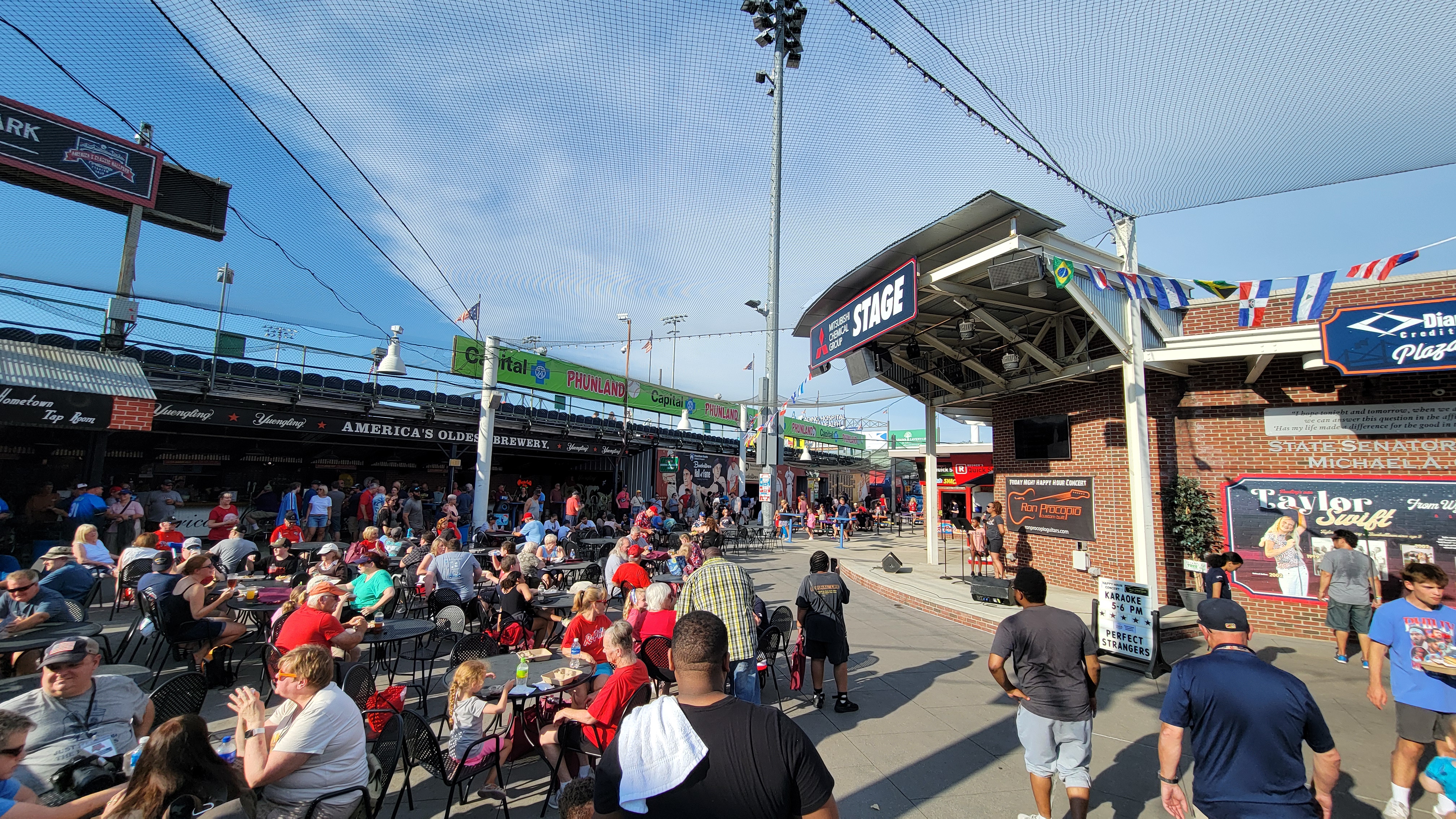 There is basically a block party before the game as gates open 2 hours before first pitch, allowing fans to enjoy the festivities in the Plaza. This area behind the first base side features a stage, which often has both pre and post-game concerts. There are many tables in this space and there’s a bar as well with long counter seating. Besides food stands, kids will find plenty of games at the end of the plaza as things get a little more cramped. Heading back under the main grandstand is an enclosed concourse that is very small. At least it is colorful and well-decorated with Reading memorabilia and once you come out on either side, space opens up. More behind third base and left field with a wide assortment of picnic spots and bar seating. Navigating can be chaotic at times, but at least the whole concourse is festive.