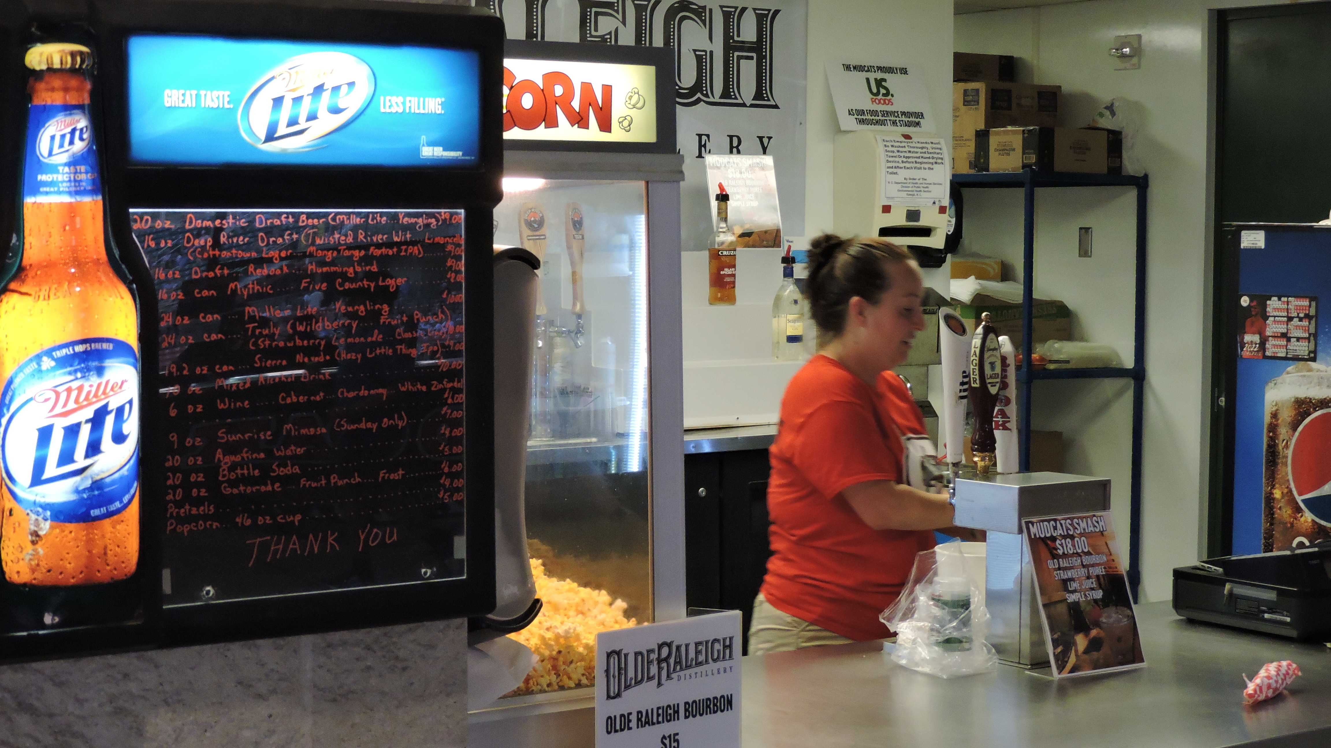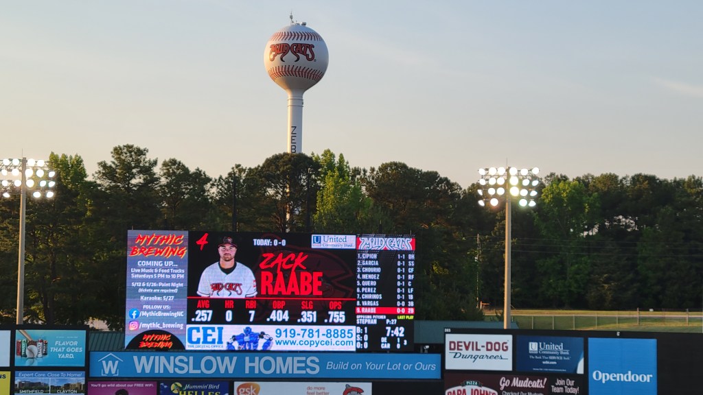 I was happy to see a little Carolina touch here as you could get a Catfish Sandwich and a Pork BBQ Sandwich (not sure if it was Eastern-style with the vinegar-based sauce). Adult beverages are excellent as the Mudcats have their own beer thanks to nearby Mythic Brewing which created Five County Lager. Deep River Brewing has their own offerings, as does Olde Raleigh Distillery with their “Mudcats Smash”, a mixed drink featuring their bourbon, strawberry puree and lime juice.