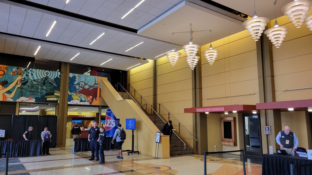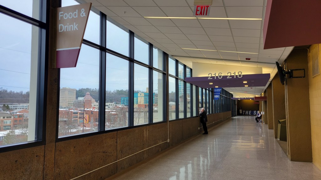 Although it’s a mountain location, Asheville has access from all directions as I-26 goes north to south and I-40 runs east to west. I-240 is a spur of that road and it’s right by the arena. While driving around, some of the roads can be tight (with varying twists/turns), but the main roads are ok. There are several parking areas nearby, including two garages along Rankin Ave near the arena. I generally had no issue with this garage, but man were the turns to each level tight, enough that I had a bit of worry I would bump my rental car. With the heart of downtown a 5-10 minute walk away, most other parking areas are sufficient too as they are within walking distance. The SoCon also runs a trolley shuttle from several of those other parking decks. Traffic both before and after Semifinal Sunday was really not an issue because of staggered departure.