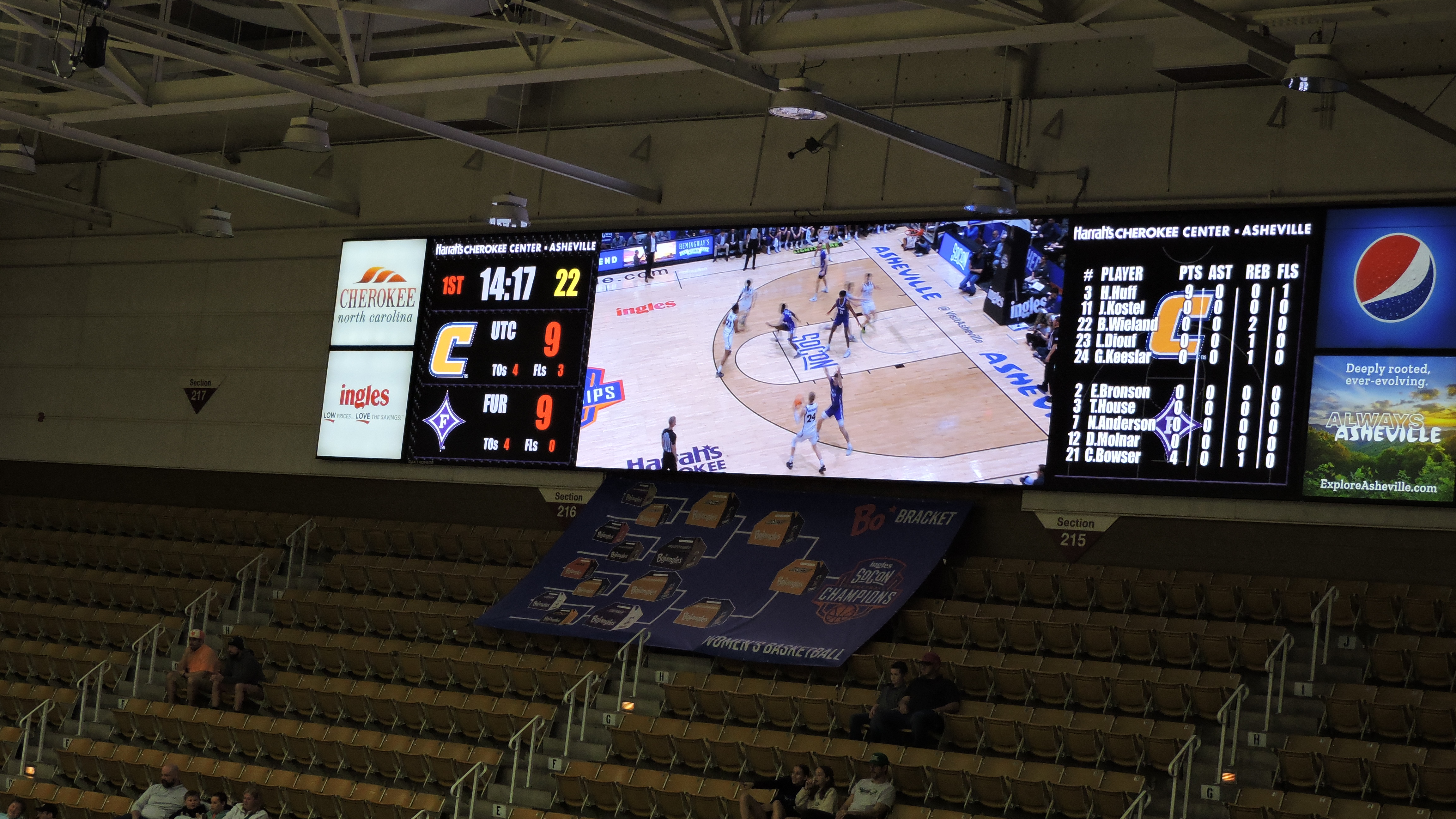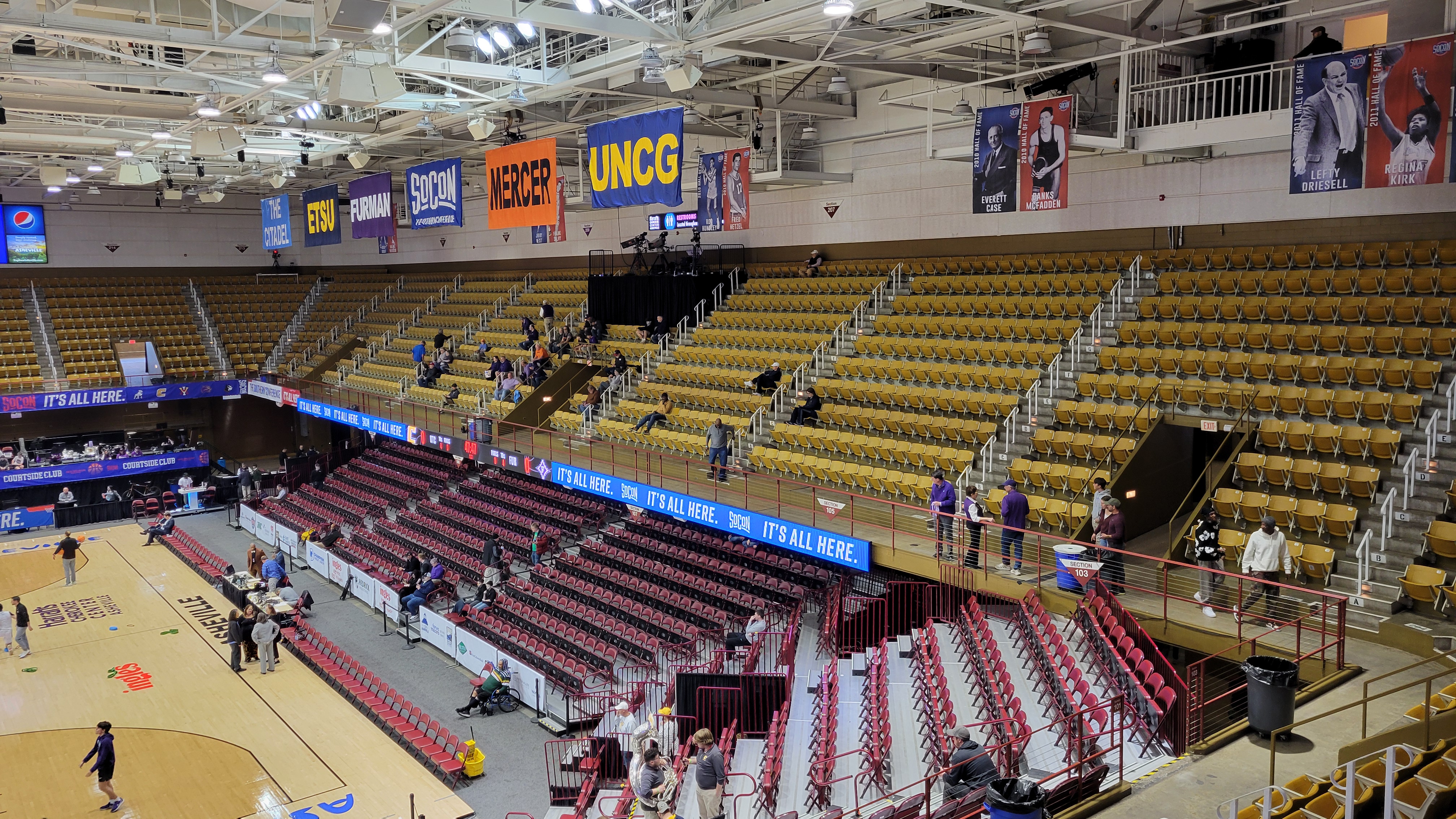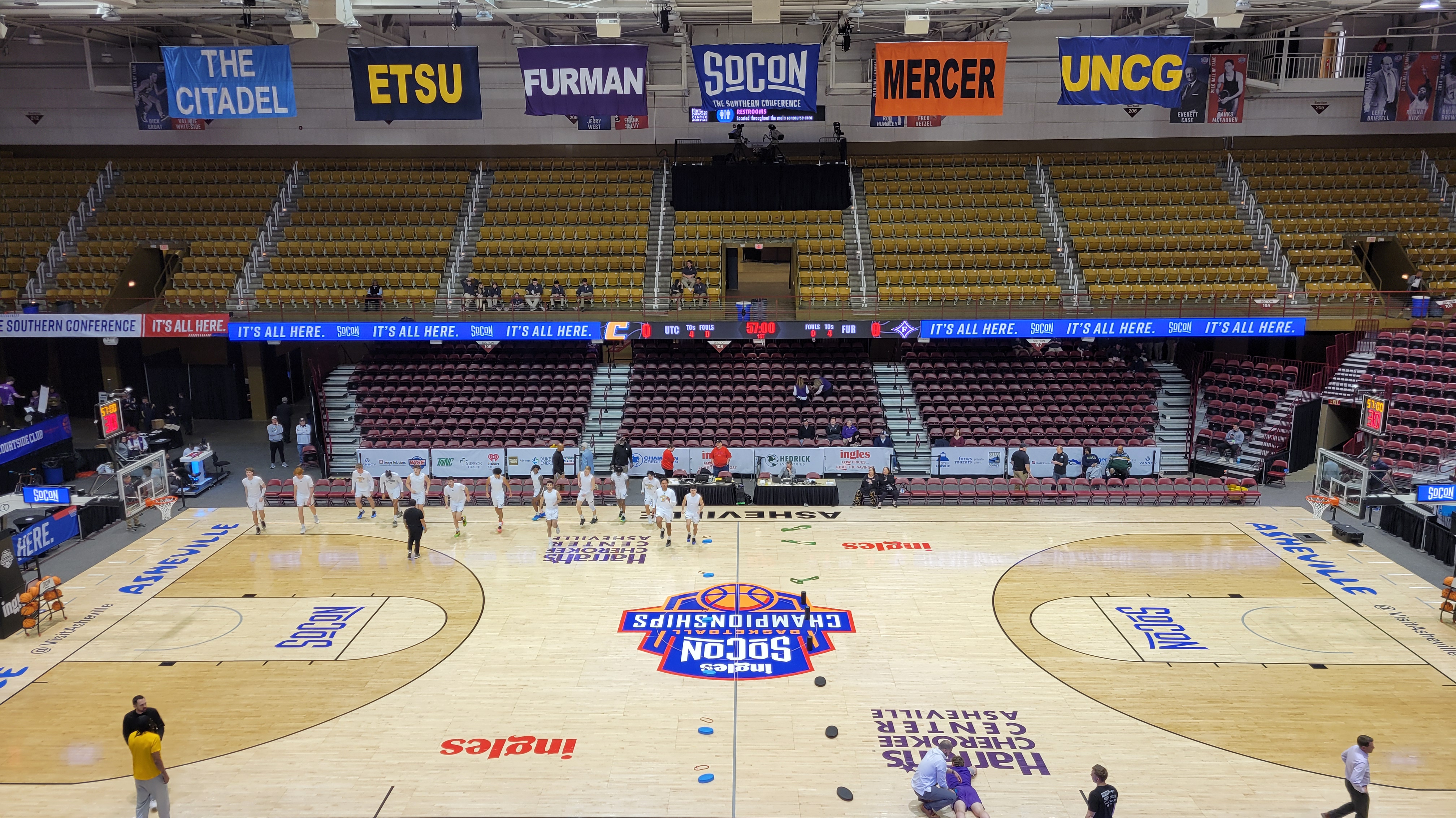 It is not a casual crowd here and the fans for most teams are pretty into the game. There is often great energy and passion throughout, making the atmosphere really fun. In this Semifinal session that I attended, the dueling cheers were awesome and it began with the intros as each pep band welcomed their team. The building is intimate and the small surface area leads to really great noise. Furman and Chattanooga went back and forth with little settling from fans. The next game featured mostly fans from Wofford, but they were just as loud for their team. If you get some relatively nearby teams, the atmosphere is goosebump-inducing given what is on the line. In my opinion, the SoCon in Asheville has the best atmosphere out of any conference tournament, better than the MAC, Missouri Valley (building too big) and WCC at the mid-major level. And better than the Power Four because of what’s at stake and those conferences play in larger venues where atmos. can get a little lost.