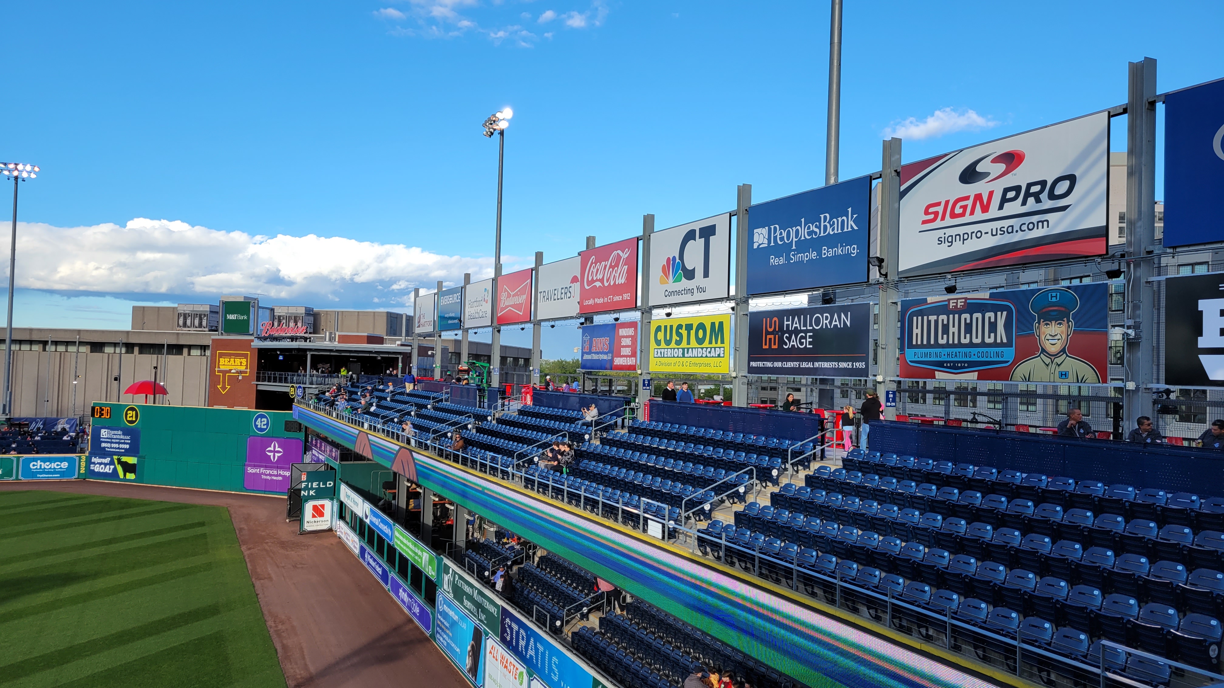 With seating sections so spread out, a unified atmosphere or loudness is difficult to achieve. However, the way the suite overhang sticks out a little over the main bowl helps to slightly enhance the infield crowd noise. Expect lots of background chatter and kid talk at the game with a smattering paying enough attention to cheer and clap when warranted. The Yard Goats have their own cheesy intro song that they come out to and there is a home run song that plays as well. Now, this might be the best in all of baseball because Brass Bonanza is what used to come on at Hartford Whalers games. It’s an iconic piece of music and a great incorporation here!
