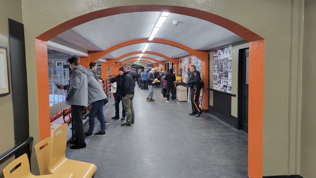 Those small side additions underneath the glass are just walkways and it’s not like a greenhouse because it is mighty chilly on a normal winter’s night. The only purpose of these are to get to your seats as the north end is the lone spot for a “concourse”. It is horrifically cramped in this area as you’ll find the concession stand and bathroom, plus it is also where people seem to congregate. That bathroom is very small, so long lines also lead to jamming the area.
