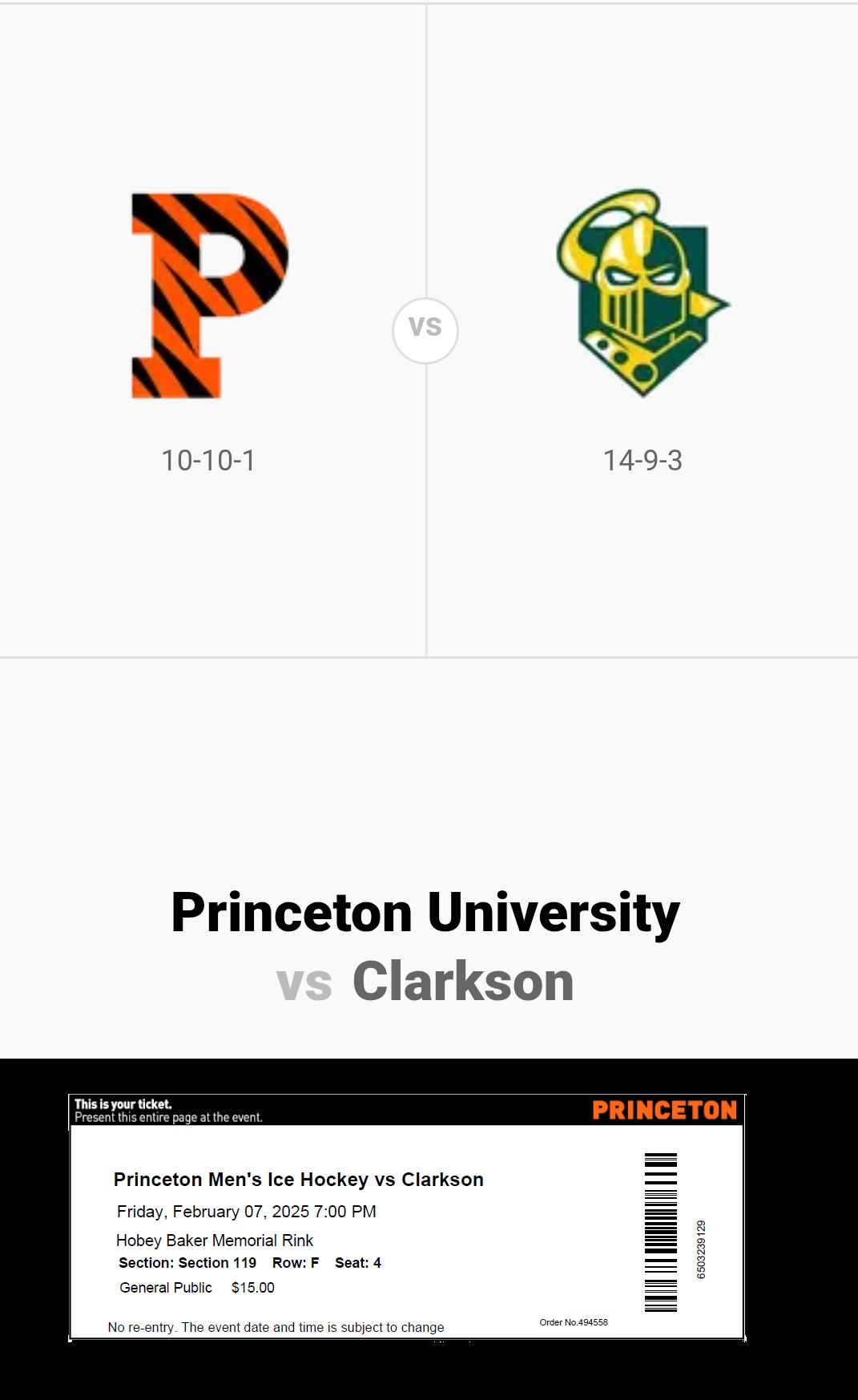 Princeton struck first as they scored just 2:16 into the game on a wraparound attempt. That would really be the only positive on the night as Clarkson thoroughly outplayed the home side. They took the lead late in the 2nd period thanks to a Talon Sigurdson goal. It was smooth sailing as the Golden Knights won 4-1 and outshot the Tigers 32-20. The game was rather dull until David Ma of Princeton had a dirty cross-check late in the game worthy of a Game Misconduct.