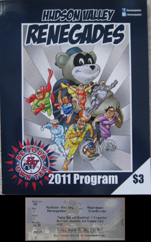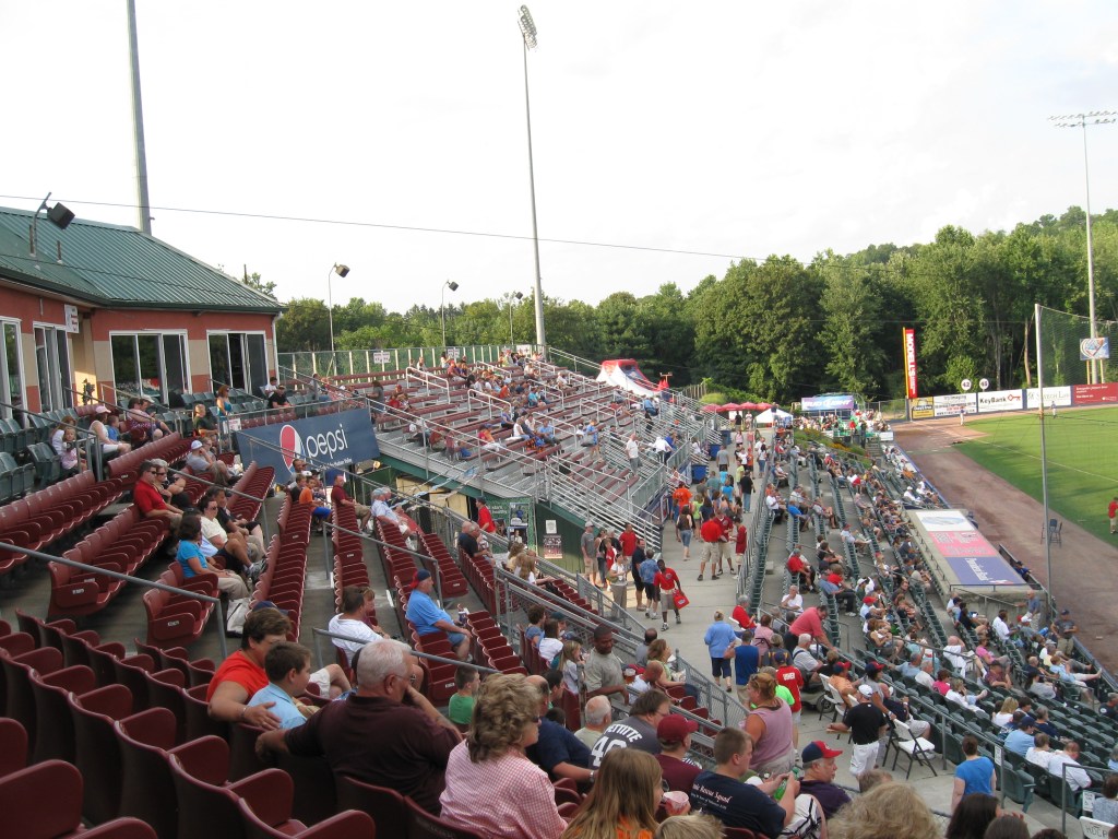 Not a fan of the team adding $2 to ticket prices when it is fireworks night. I’m afraid that teams will catch on to this in the future since these are by far the biggest draws. The rest of the tickets were surprisingly pricey for the NY-Penn League and the region it’s in. A non-bleachered seat reached double figures and the 100 level was either $14 or $15 on a non-fireworks night. Parking was an overpriced $5 and the program was $3. Concessions were OK ($3.75 for a hot dog, $5.25 for a beer, $2.75 for a water). Overall, the cost of attending a Renegades game was about the same as the Norfolk Tides game I attended in May (in a downtown location and in a league two levels higher).