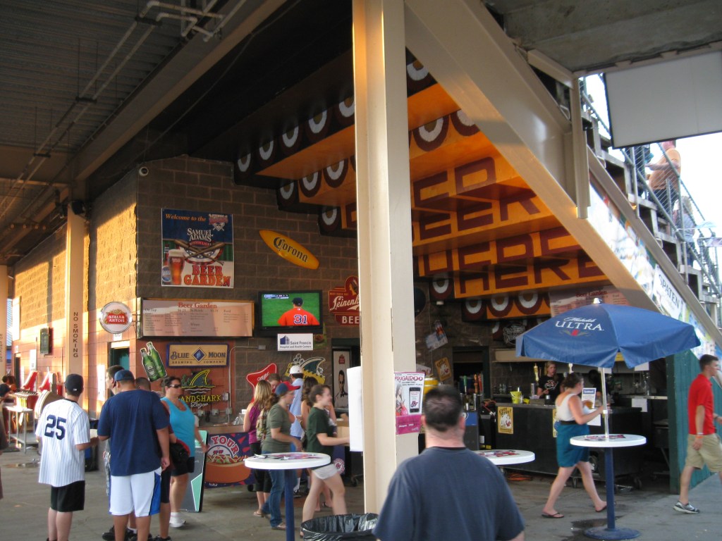The concourse is located behind the seating bowl and is open to the elements, but half of it is covered by a roof. A nice job was done to make this area lively and enjoyable. I liked the boards on the wall when you first walked in that not only had lineups and standings, but also “player of the week” and “longest home run”. A small team store is located in the front too. Unfortunately, only one Men’s restroom was available, but since its baseball and there’s never a rush, it wasn’t a big deal. The beer garden was a really nice touch as it was situated in a nook of the concourse that provided a nice bar set-up with standing tables and TVs, which normally play Yankees games. It’s not an ideal concourse, but they make the most of it.