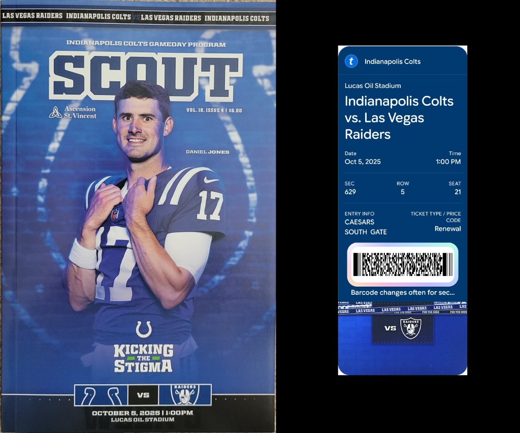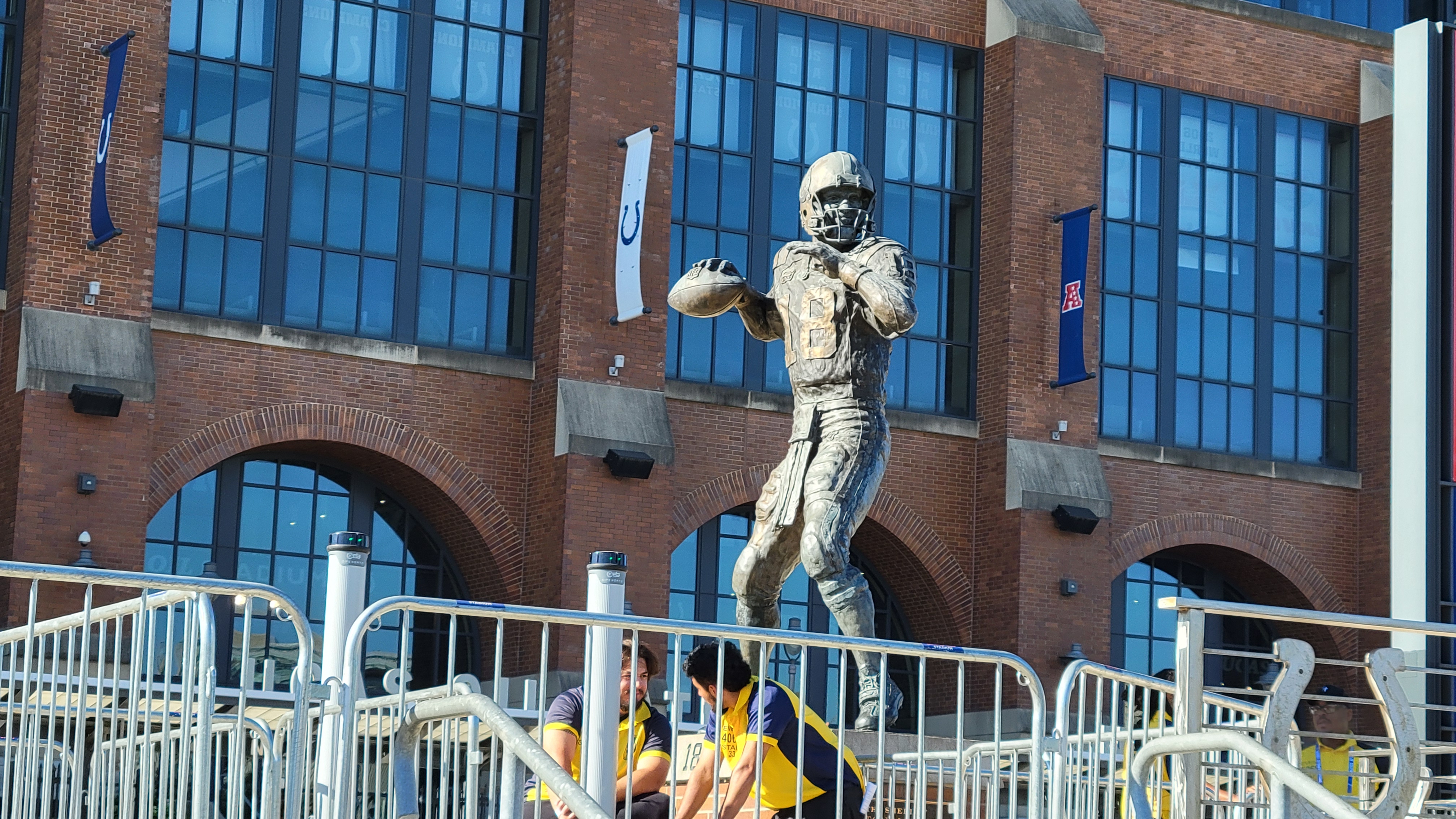 The annual football trip with my brother brought us to the Midwest in 2025 and after seeing a game at Ohio State on a College Football Saturday, we drove to another state capital for NFL action on Sunday. Indianapolis is at the center of Indiana in more ways than one as all roads seem to point to The Circle City. Indy has a varied economy and it has become a popular center for many tournaments and conventions. Even though basketball is most popular here, football has had a steady following since the Colts arrived in 1983. For awhile, the team was never that great and their best season was 9-7. That all changed when Peyton Manning arrived and his 13 seasons with Indianapolis featured near continuous success. They went 141-67 with him at QB and won 8 division titles, made it to 3 AFC Championships and 2 Super Bowls. In 2006, the Colts reached the top of the mountain with a Super Bowl win. During more recent times, Indy has been up-and-down and their last playoff victory came in 2018. The Colts have always played indoors during their time in Indianapolis, first in the Hoosier Dome near the Convention Center and then starting in 2008, Lucas Oil Stadium. The latter has the ability to be open-air as both the roof and large end zone window are retractable. It doesn’t happen often as 70% of the time it’s solely an indoor venue for the Colts, albeit an excellent one.