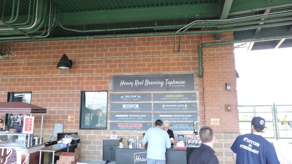 Beach favorites like Funnel Cakes and Ice Cream should be expected here and they delivered in multiple places. Jersey favorite Pork Roll, Egg and Cheese was also available. Other food items were decent in variation and it was nice that they put “GF” on the menu for items that were gluten free. Portable carts include Serra Sausage from South Jersey and Mr. Q’s Cheesesteaks. Another Mr (Miyagi) prepared Teriyaki Bowls as that familiar smell of those flavors on a Wok filled the first base side. For anyone looking to drink, there is a lot to choose from. Heavy Reel Brewing from nearby Seaside Heights had several options, including “Reel Claw”, an IPA made just for the team. Out in the “Sand Bar”, there were eight signature cocktails to choose from.
