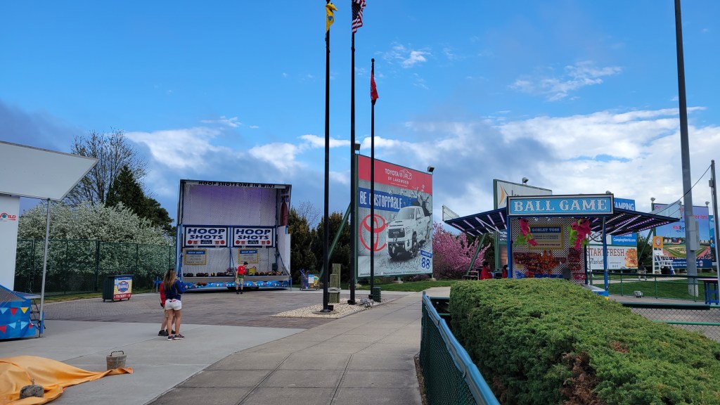 Fan support is decent as the BlueClaws have established themselves well and do a solid job of bringing fans in during the summer season. People were wearing more BlueClaws gear than Phillies stuff. Given the large population of Lakewood and also the communities further east in Monmouth and Ocean counties, they don’t have to rely on tourists coming in. For 16 years, Lakewood led the South Atlantic League in attendance, but now the team has settled into third place in recent times. I’ve seen a wide variety of crowds as my first game on a July Saturday saw a packed house with few seats open. When I returned in 2023, the crowd was remarkably small (maybe 600 on hand) for a 4 PM weekend game in mid-April (though there was a threat of rain and it was cool). The weather was super nice earlier in the homestand and crowds remained small as the only thing that drew well was Opening Day, which had a lot of festivities and fireworks. The “announced” sellout was big enough that the team had to apologize on multiple channels for the long lines and (what sounds like) understaffing for that game. Their 2018 playoff run brought an average attendance of 2,902, which put them 5th out of 9 teams that competed in the playoffs during a four-year stretch.