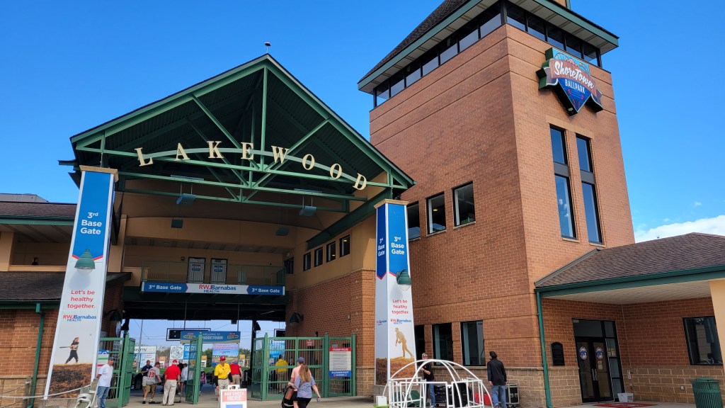 The Garden State Parkway is a toll road and it runs north-south about five miles inland from the shore. Getting to Lakewood is easy using this road as Exit 89 drops you off not far from the ballpark. Fans can also arrive via I-195 to the North and take US-9 thru town. The complex occupies a good amount of space, which leaves room for a large paved parking lot. In case that overflows (which it did on our first trip with a big crowd), there is a gravel lot in the back. Leaving the stadium, there’s signage for how to get back to the correct direction on the Parkway, which I didn’t think was necessary because exiting right will easily get you back to the GSP North or South. Ballpark traffic was fine, but general shore traffic on the Parkway can be hectic, especially in the heart of the summer season.