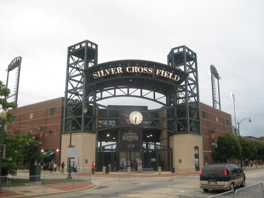 During our Midwest trip, we took a break from Chicago and headed an hour southwest of the city for a visit to Joliet and their downtown ballpark. Located along the Des Plaines River in Northern Illinois, Joliet is one of the fastest growing cities in the country with a population approaching 150,000. The former city of stone and steel has done a nice job revitalizing a now-pleasant downtown area that is at a rare crossroads of the old Lincoln Highway and Route 66. In 2002, Joliet got an independent Northern League team, the Jackhammers. After eight years in newly built Silver Cross Field, the team folded and a new Frontier League franchise called the Slammers took up residence. A few weeks after our visit, they won the championship in their inaugural season. Hopefully the Slammers are here to stay as they play in an excellent location and a great ballpark representative of the city they play for.