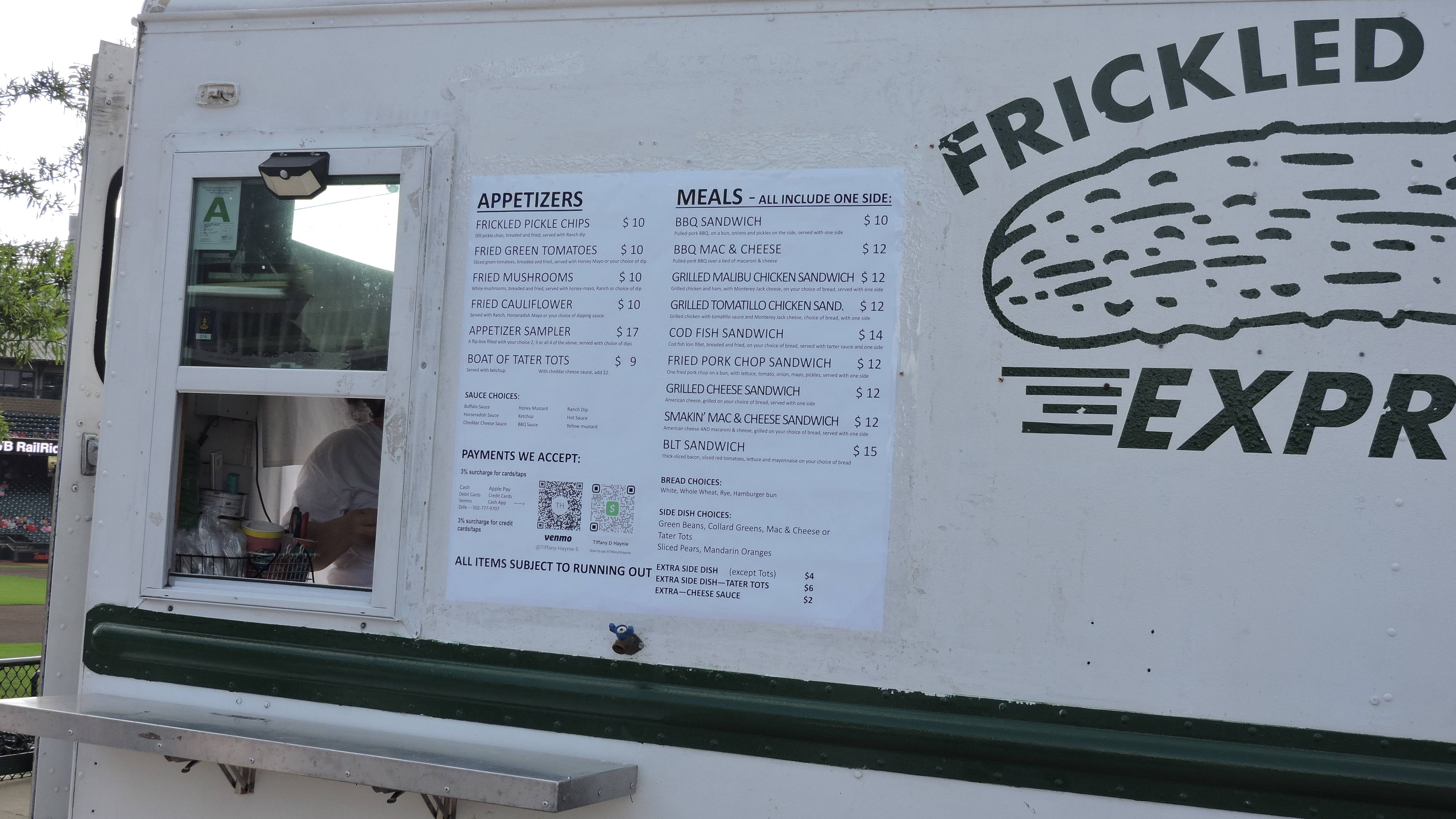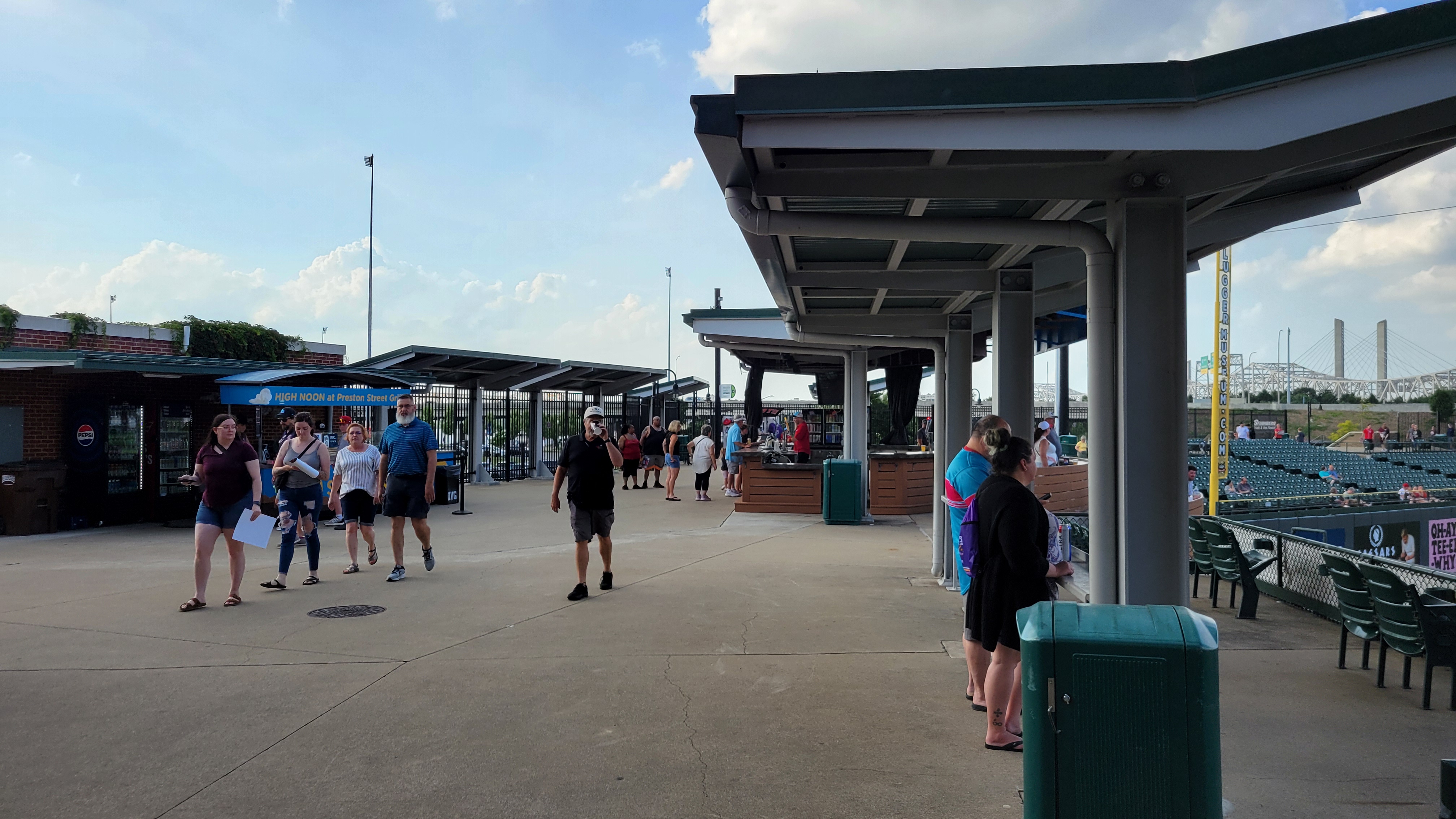 Slugger Field has enough variety to either take a stroll around on the concourse or look at the website menu to see which option interests you. My recommendation by far would be a separate food truck called “Frickled Pickle Express”. While being known for their fried dill pickle chips, there is so much more. Ten different meal options range from Pulled Pork to Cod to Grilled Tomatillo Chicken. Infield offerings aren’t bad either with Fried Bologna and Porkchop being the more interesting of the sandwiches. Missing are some true KY specialties like a Hot Brown (probably tough to make at a ballpark) and Derby Pies (much easier sell), plus Bourbon wasn’t highlighted as much as it should’ve been. Beer was good and I tried the “Home Run Hops” from Falls City Beer. The other local product, Against The Grain is brewed in the building. Last thing to try at Slugger Field is The Cookie Lady. Elizabeth Kizito has been a vendor since the stadium opened, often selling homemade cookies while carrying the basket on her head. She came to the States from Uganda and is so beloved, the Bats honored her with a bobblehead a few years ago. Stop by her stand in the concourse and get a cookie. Special treat and special woman.