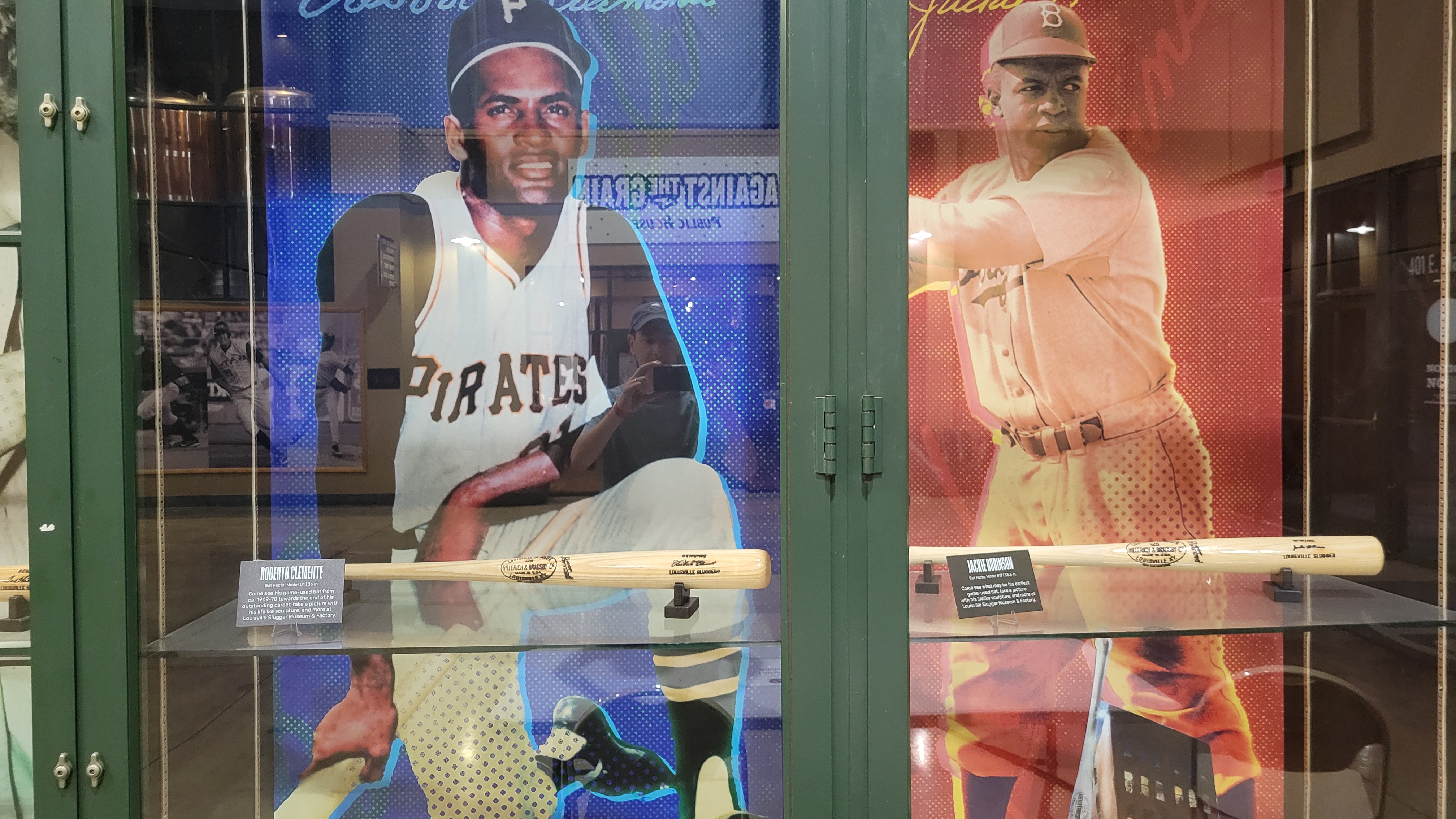 The cavernous entryway is called the “Hall of Fame Pavilion”, a little misleading given that there isn’t much of an HOF here. I guess the small spot with plaques on the wall for “Kentucky Hall of Famers” counts. There is an effort to highlight Louisville baseball history, however the glass wall display cases are not well lit or easy to peer through. At least championships get pennants in this area, plus the wall murals of former players is impressive. Where these are located near the East Gate, also check out the impressive Louisville Slugger bats from the game’s biggest stars. More former player honors are found with banners overhead on the concourse. The most significant player piece is the statue outside the main entrance of the stadium for Pee Wee Reese. who was a Louisvillonian(?) through and through.