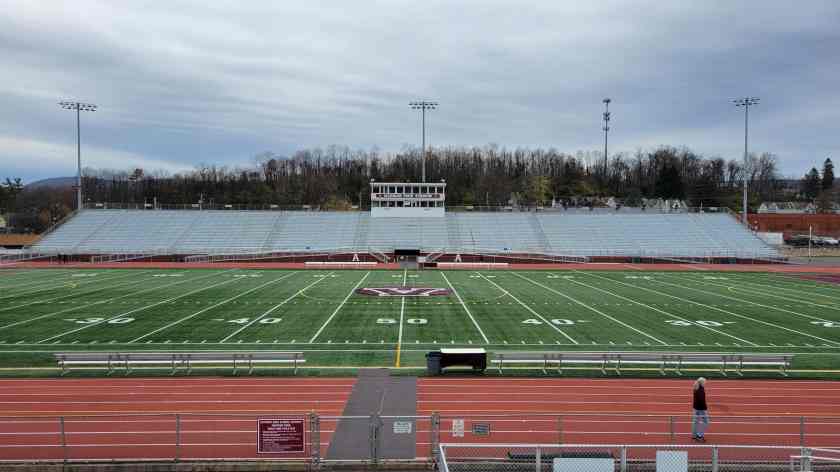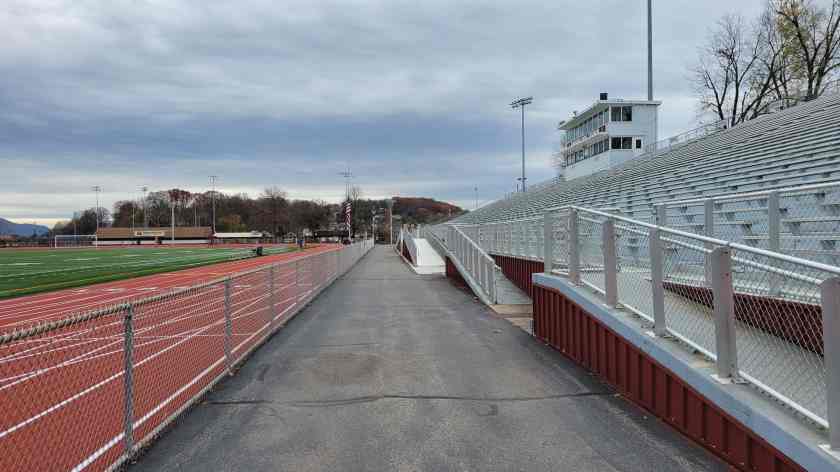 The Altoona Area School District owns the stadium and there are also soccer and track events held here. Since it’s not at the High School and it’s more of a city park, the field and track in the stadium are open to the public, along with other nearby courts and fields…..In-game advertising has even reached the High School level. I couldn’t help but chuckle when the announcer informed us, “(team) has now entered the Sheetz Red Zone!”…Is Notre Dame’s fight song the go-to for high school bands? Maybe it’s easier to play and learn? BG used it here and having gone to games supporting my cheerleading daughter, I’ve heard it plenty in New Jersey as well…..Check out this article from the Altoona Mirror on October 4, 1929 as the new field was about to open in Mansion Park…..In case you’re a wacko crazed sports fan like me and decide to go as a neutral, note that playoff game tickets are NOT sold at the gate. Tickets must be purchased in advance online through the PIAA website…..It’s not common across PA for their to be a consistent host of district championships and state playoff games. Erie’s Veterans Memorial Stadium was a similar one, but combing through years of data, they don’t host every year like Altoona does. Otherwise, various High Schools will become neutral sites for these games.