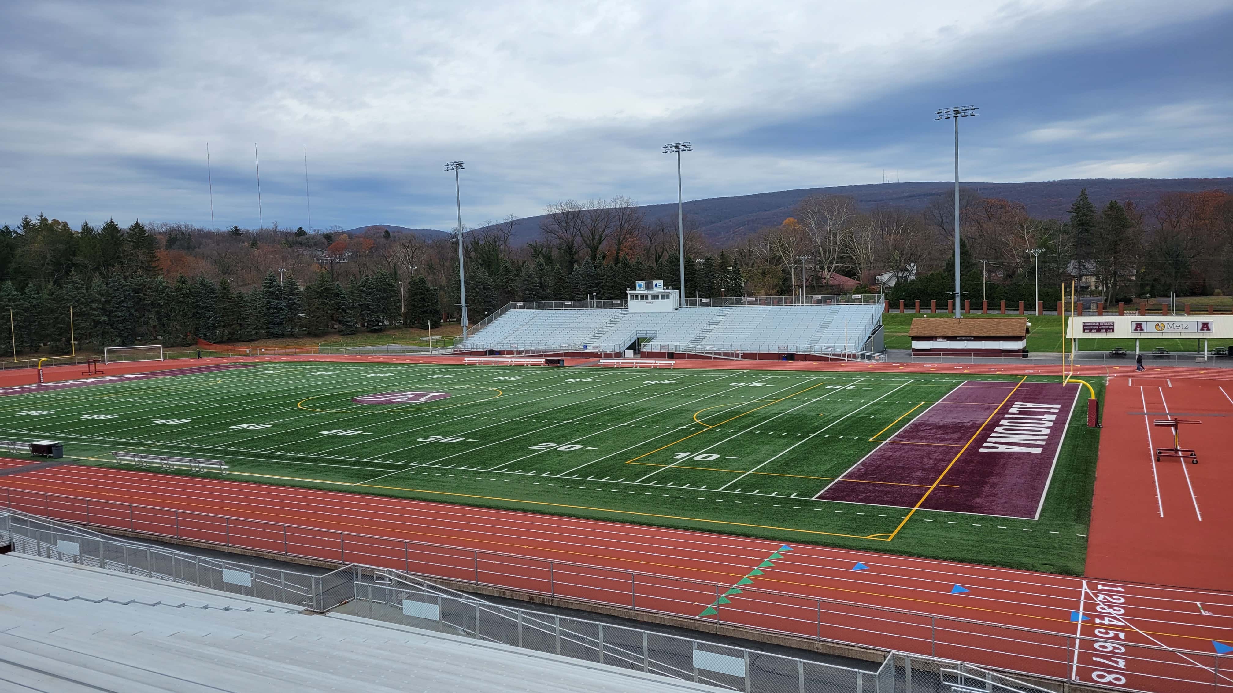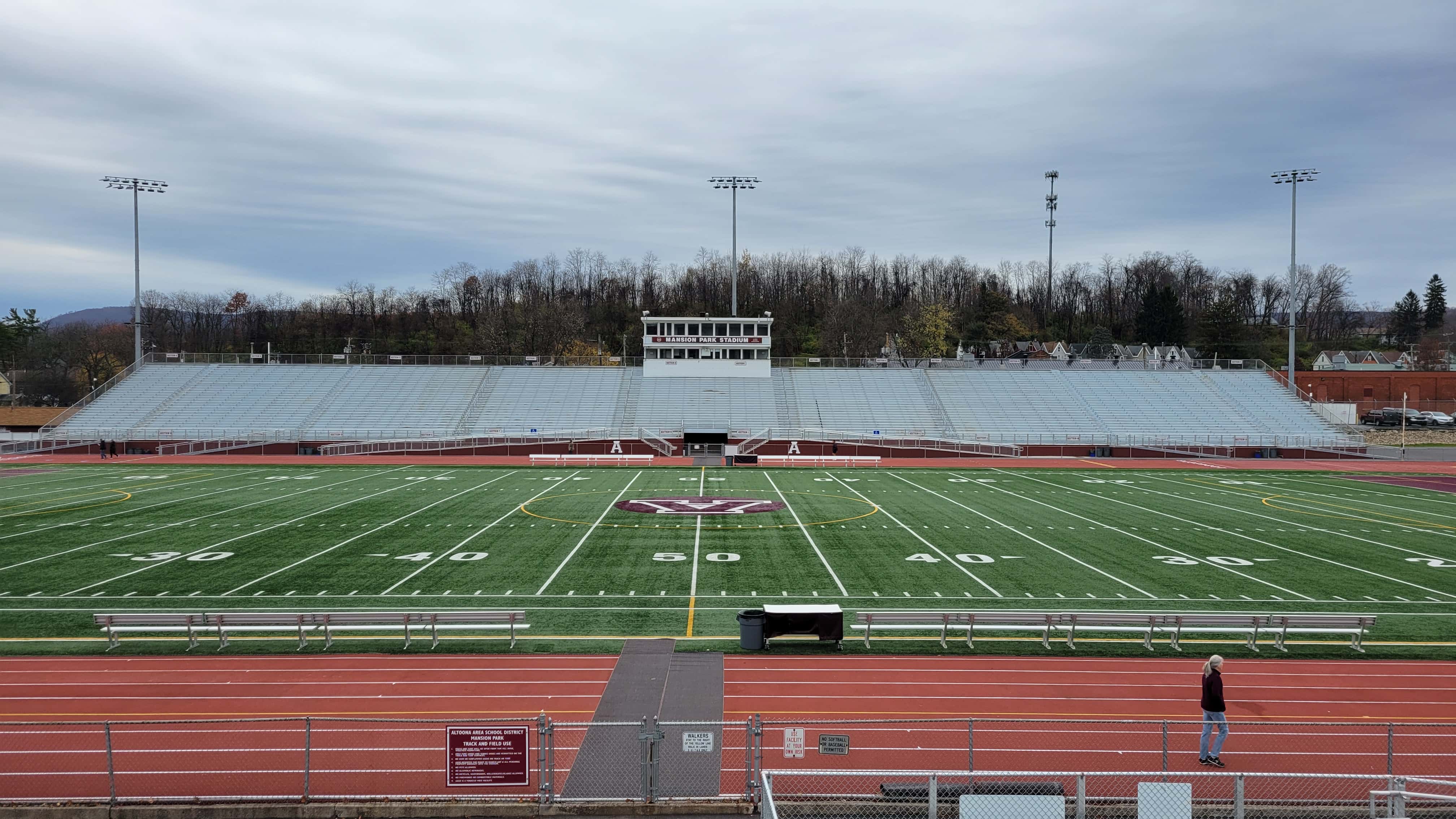 This November trip began in Altoona, a small city in Central Pennsylvania that is the state’s 12th largest with a population of 44,000. Sitting at the base of the Allegheny Mountains, Altoona became “Railroad City” as it was at the center of the industry, specifically the Pennsylvania Railroad (PRR). Altoona may still be known for that, but it’s also the headquarters for Sheetz and Boyer (think the Mallo Cup), while also becoming a leading area for health care in the state. Altoona is a place that many high school football players want to reach as District championships are won here each season. In addition to being the home field for local high schools, the 10,200-seat Mansion Park Stadium hosts numerous playoff football games. PIAA runs the sport in this state and it is divided into 6 classifications as the 1A level are the schools with the smallest enrollment and 6A consists of the largest schools. The state is broken into 12 regional districts and District 6 is in the Central and West-Central part of the state, which includes Blair County and the Altoona area. Given that the counties making up District 6 are rural, many of the schools fall in the 1A or 2A classification and those feature 8-team playoff brackets. The championships are all held at Mansion Park Stadium, a simple but large facility that opened in 1929. The following night would feature two teams from Johnstown competing for a District 2A championship, while I was here on a Friday Night to see who would take the 1A crown. Bishop Guilfoyle, from Altoona, has won the most titles of the schools currently at the 1A level and they even won State Titles in ’24 and ’21. Their opponent, Juniata Valley, comes from tiny Alexandria 30 minutes to the west and they were looking for their first District 6 crown since 2018. It was a chilly, but calm night to watch two teams with different aspirations.