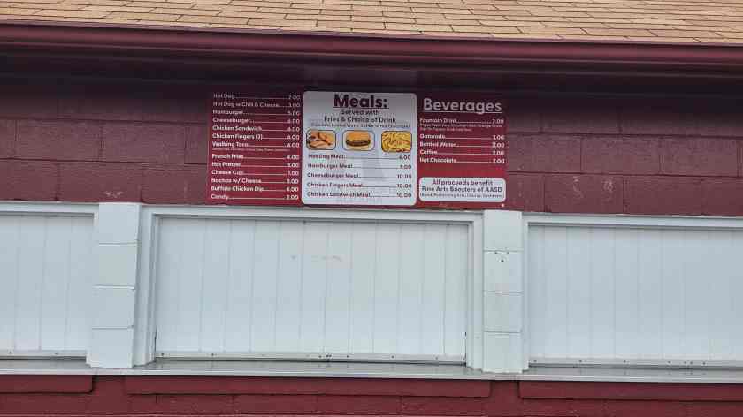 The concession stand draws a decent crowd throughout the game and the menu isn’t bad as they have the grill going. Hot Dogs, Burgers and Chicken are the main items with meal deals tacking on fries and a drink.