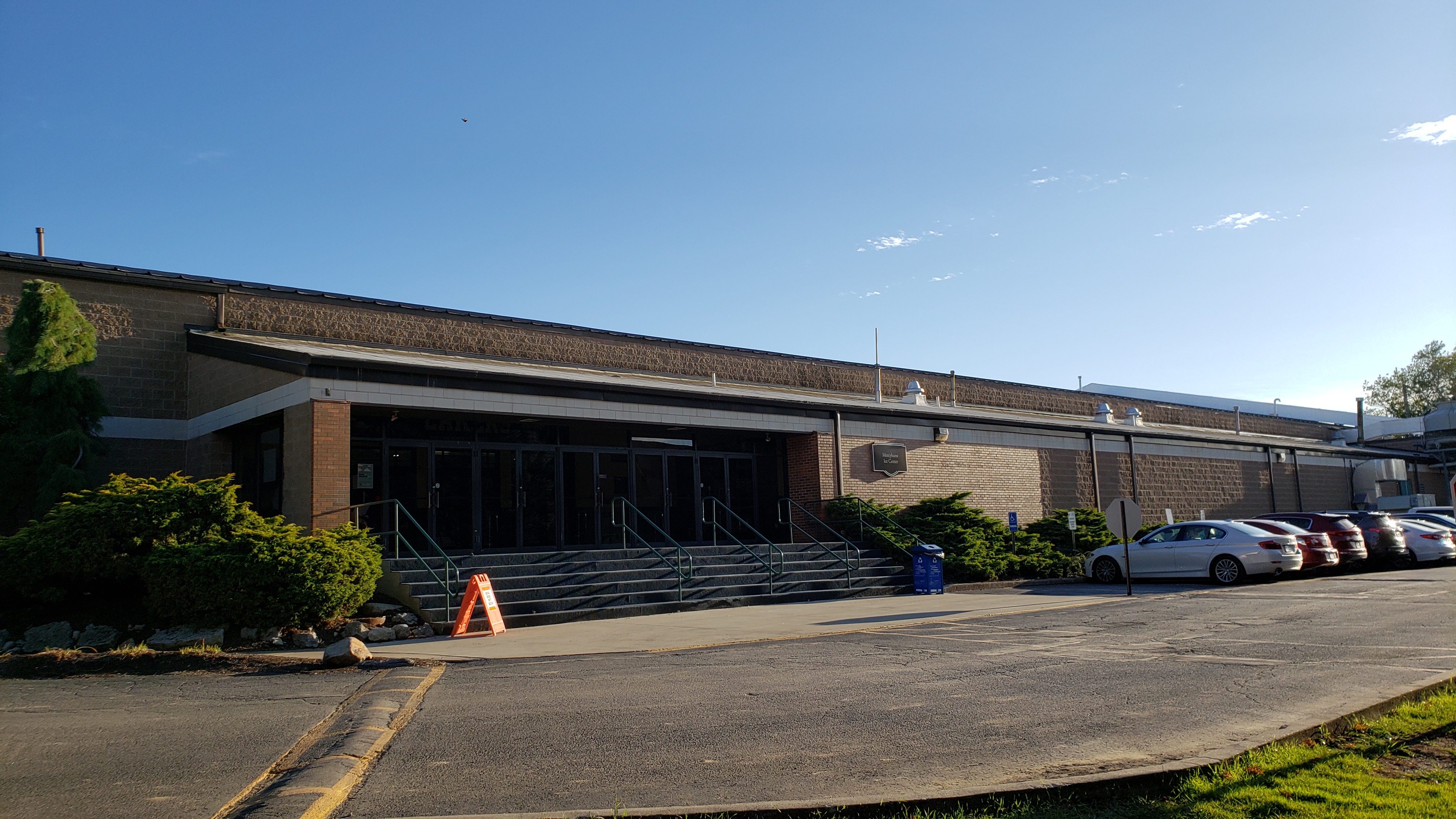 The rink itself is a triangular building made with brick that very much looks like it is from the era that it was built in (the 1970s). A newer entry vestibule is attached and though it features glass and red tiles, it does fit in. Also combined with the complex is an indoor track facility. The rink is on the second floor as stairs are needed to reach the main entrance.