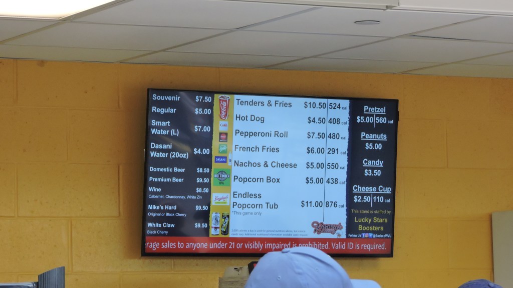 Tickets vary depending on opponent, though the range isn’t too dramatic. This season, a seat for the Towson game is $50 – $100, while if you want to go see WV play Oklahoma, it goes up to $80 – $150. The secondary market isn’t a bad place for tickets and you can expect a similar range to what is seen at the box office. Overall, prices are near to a bit above average within the Big XII. Parking costs are $20 – $40. Concession prices weren’t bad as a Hot Dog cost $4.50, a Burger/Fries combo was $10.50 and a beer stayed under double digits.