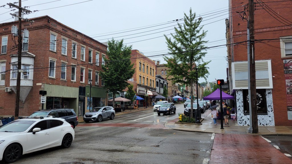 There are multiple campuses spread out through Morgantown and the stadium is located in the Health Sciences section north of downtown. This neighborhood (Evansdale) contains school buildings, apartment complexes and a hospital that frames the background for the stadium and main tailgating scene. Fast food joints make up most of the commerce west of the stadium with a decent spot or two in the spread-out area. Downtown is a couple miles south and while you can expect a college-town vibe along High Street, the rest of the city is quite bleh. Outside of a small history museum (which was nice, but took us less than hour to go through), your best bet for pre-game exploring is the beautiful overlook at Coopers Rock, 30 minutes to the west.