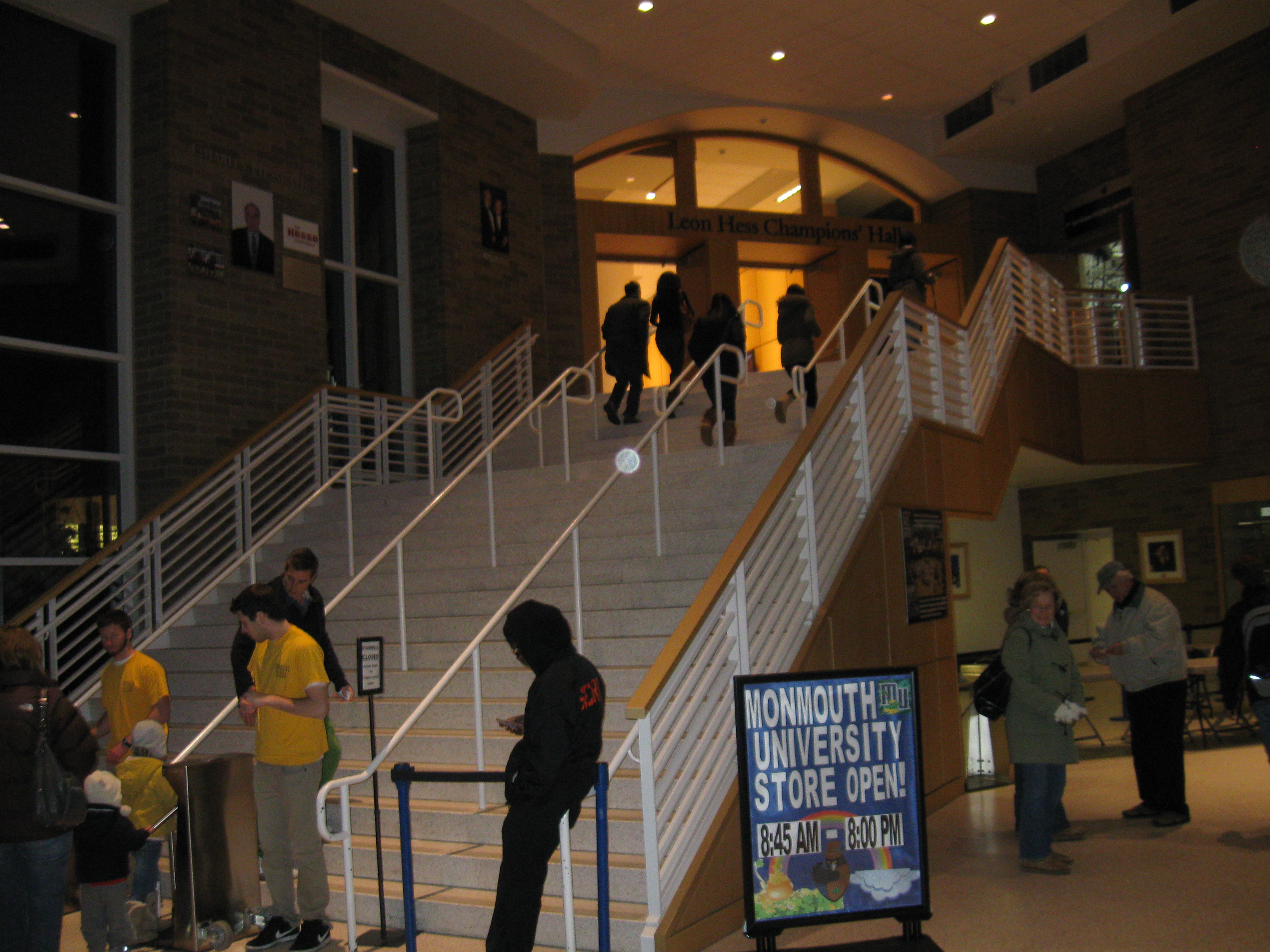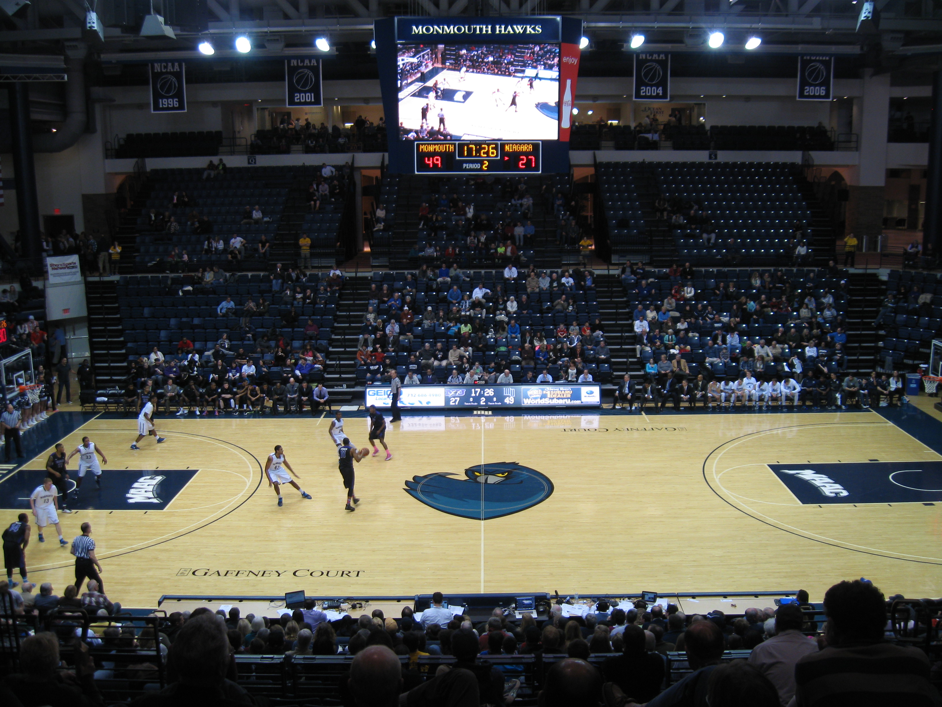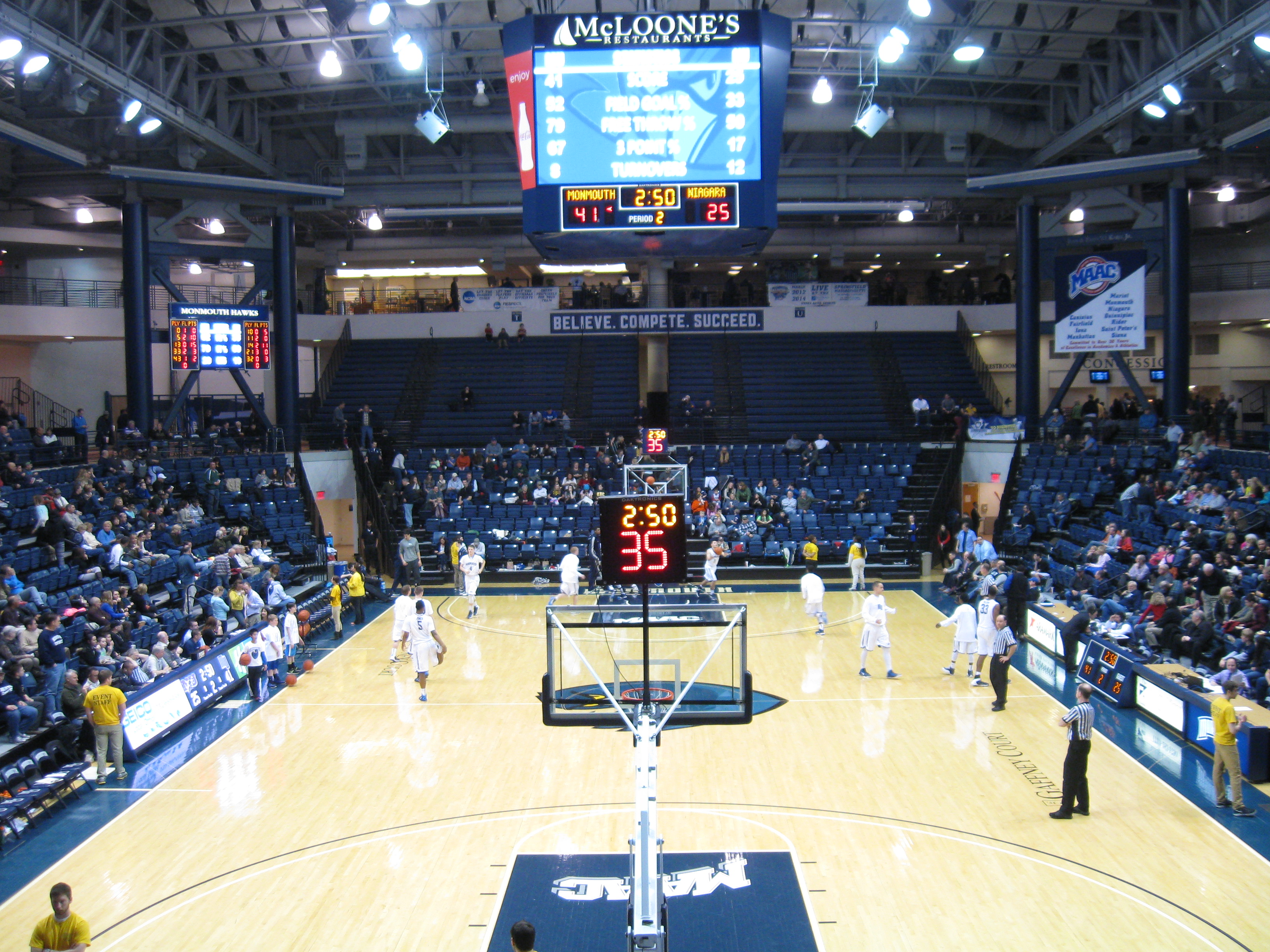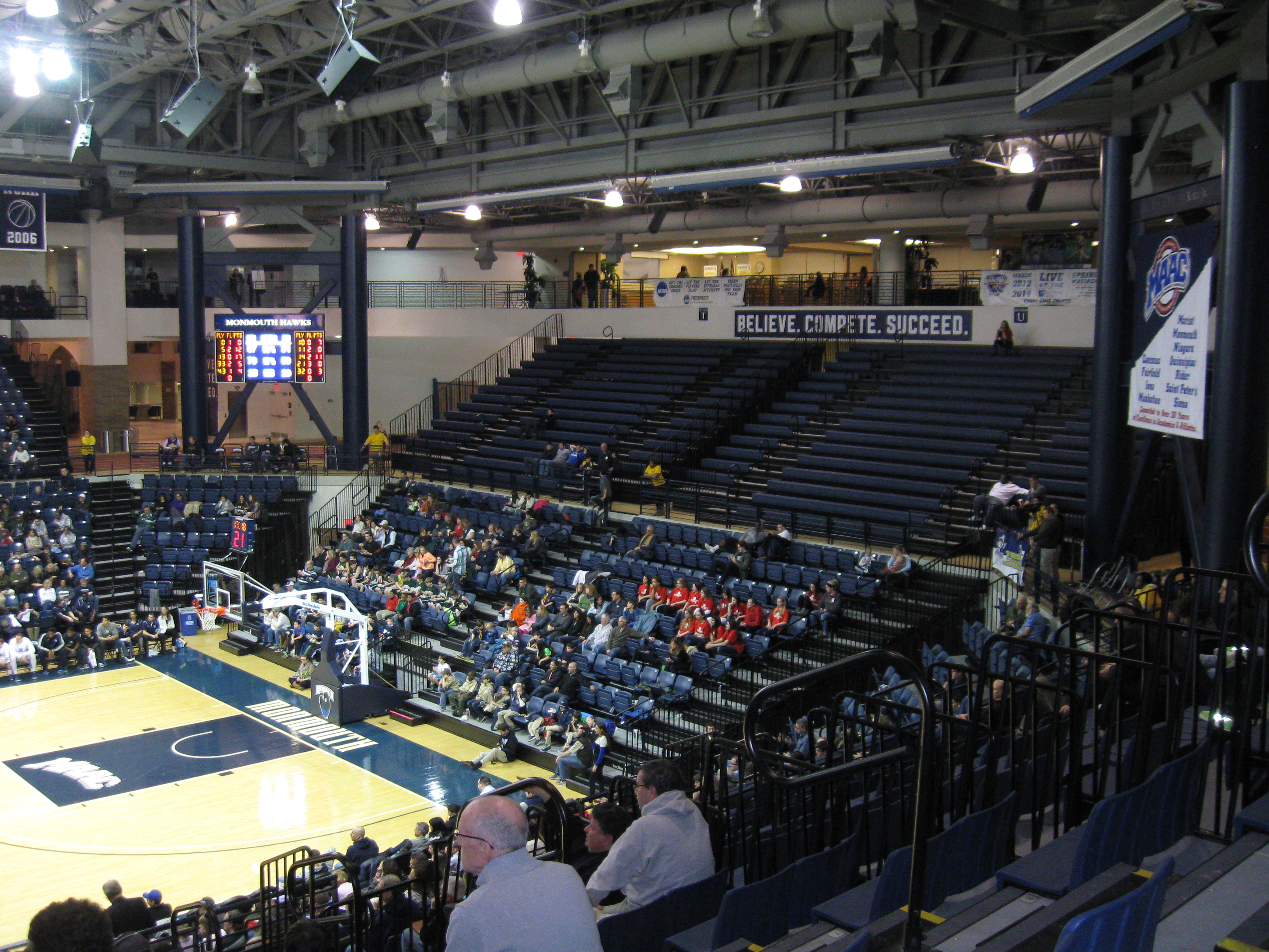 The MAC is near the center of Monmouth’s campus, which is about five miles east of the Garden State Parkway. Exit 105 onto Rt. 36 East is the primary route, which then leads to Rt. 71 and the entrance to campus. Driving in for weekend games is fine, but beware of some ugly traffic during weeknight games. There is plenty of parking in front of the arena and getting out after the game was not an issue.