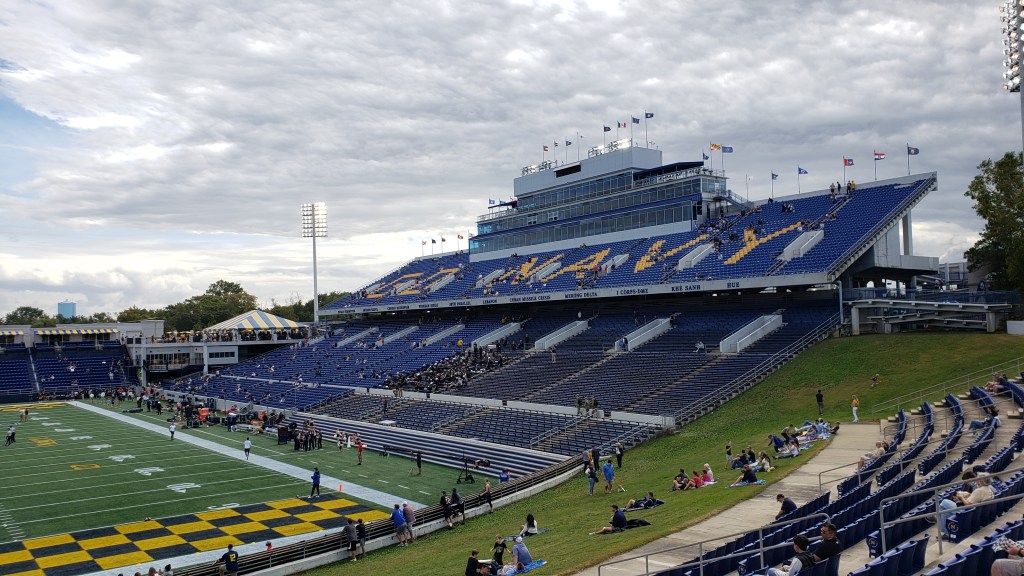 I was very surprised at the amount of people that did not return to the game after halftime. Navy had a 21-14 lead and nearly half the crowd stayed at their tailgate or just left. Why? That’s irritating as a sports fan. As for the crowd before then, it probably was less than 20,000 as you could argue that the stadium wasn’t quite 50% full. Not great for a game against a ranked, undefeated team. The same occurred pre-pandemic, including a poor showing (though it was raining) in 2016 against #6 Houston. Attendance rankings within the AAC see Navy in the middle of the pack.