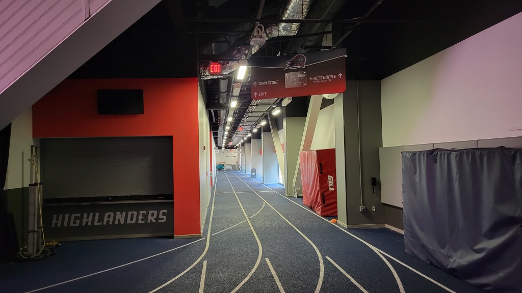 I have a few local-ish qualifying sports facilities in my back pocket in case a winter trip gets cancelled for weather and this was the time to pull that out. A forthcoming storm in Virginia meant that I made a last-minute decision to see an MLK day matinee 45 minutes away in Newark. The New Jersey Institute of Technology (NJIT) has been growing rapidly the last few decades. Along with geographical growth, their other collaborations have led to what has become an impressively diversified university that isn’t just tech and engineering. Athletics also has seen a similar ascension as the Highlanders went Division I in 2006. It took awhile to find a natural conference home as that finally came in 2020 when the America East came calling. NJIT has never found much success on the hardwood (possibly changing this season?) and their biggest moment came as an independent when they shocked #17 Michigan. The school displayed their deep financial pockets by opening a $102 million athletic facility in 2017. Plenty of sports use the impressive, multi-functional building and the showpiece is the 3,500-seat arena.
