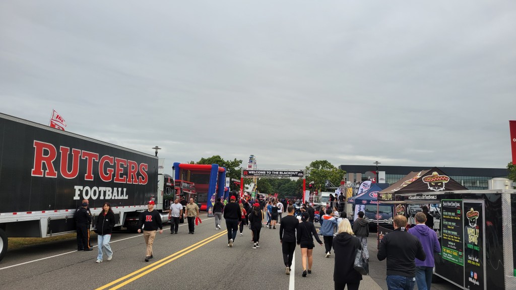 The Stadium sits near the banks of the Raritan River in Piscataway Township on the Busch Campus (there are four separate campuses in the area). While Piscataway acts more suburban, a few miles away just across the river is downtown New Brunswick. This city features corporate headquarters, a state theatre and a mix of bars and diverse restaurants. Given parking and proximity to the stadium, it’s not really worth the time or effort to explore before the game. Gone are the days of nearby Grease Trucks at Rutgers offering a “Fat Sandwich”, however the school has created “The Rutgers Boardwalk” along a road outside the stadium for each home game. The aim is to replicate entertainment along the Jersey Shore and they do a good job as there are rides, games (both free!) and a stage for music. Family entertainment and Food Trucks enhance the scene and it’s worth coming early to check it out.