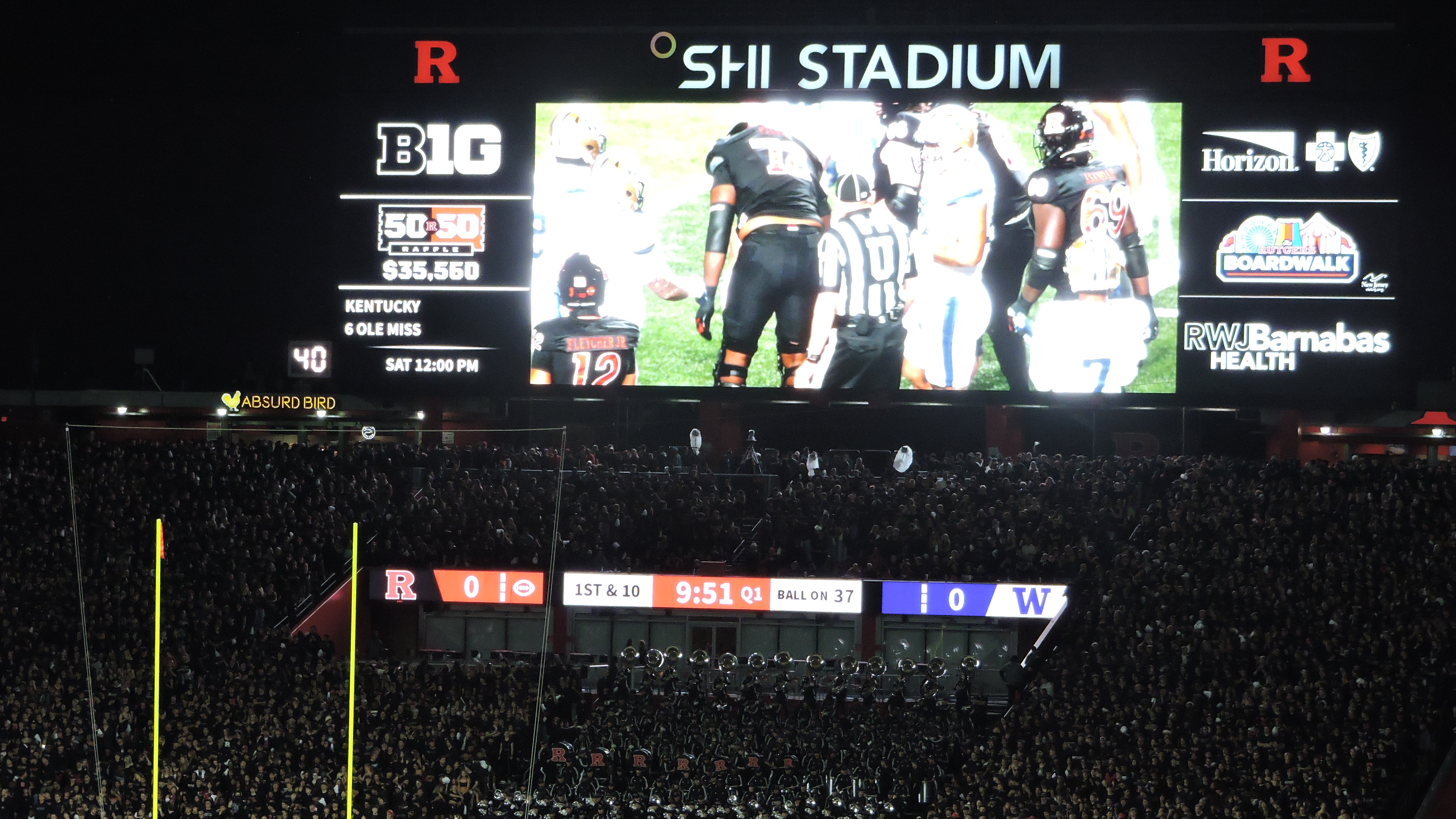 2010 was decent, while in 2024, the place turned into a giant party. That was the vibe the team presented and I’m sure being a Nationally Televised Friday Night game helped proceedings. Lots of music as opposed to band and they played many new and old hits that folks can sing along to. Near midfield, fans stood for a lot of the game and the noise overall was great as the crowd responded when necessary. Several points were loud and roars for key plays were solid, though not top tier. Rutgers impressed on a big stage with a worthy atmosphere, just note that not all conference games are set-up like this (two weeks later vs Wisconsin, it was a toned down noon game in front of a smaller crowd). Traditions are aplenty at Rutgers as prior to kickoff, the team entrance is capped off by the Scarlet Knight mascot riding a horse onto the field. Great stuff. This night game in 2024 had tons of fireworks and they parlayed that into jacking up the crowd with Journey’s “Don’t Stop Believing” heading into the 4th Quarter. From the fans, the most popular battle cry is a long-winded yell of “R” from the students and then “U” from the rest of the stadium. They also join in towards the end of the fight song with: “R-U Rah-rah, R-U rah-rah, Hoo-rah, Hoo-rah…”. After a touchdown, a Revolutionary War style cannon goes off and startles the unprepared.
