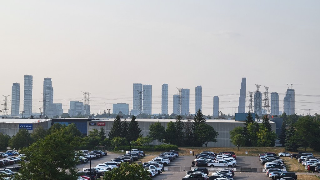 For the last few years, Canadian Wildfires have been a real problem as their frequency has increased markedly. It also leads to smoke in the atmosphere across North America. On a comfortable night, a northwest breeze brought in this smoke from the fires in Central Canada. A thick haze was evident in the sky and you could even see the particles underneath the light fixtures. Thankfully, the air quality wasn’t lowered significantly and you couldn’t smell it……Speaking of the lights, they shine down and not outward. A nice little feature as they aren’t blaring into your eyes when you look up…..Airplanes are often heard and visible during matches as the stadium is not too far from Pearson Airport…..Many of the suites were empty for our match. Very surprising as I figured this event would be a corporate showy, take the clients kind of thing. Especially since we’re in Toronto…..Right near the facility, two men in 2015 tried to build a man-cave. A literal cave underground. They got pretty far until stopped by police.