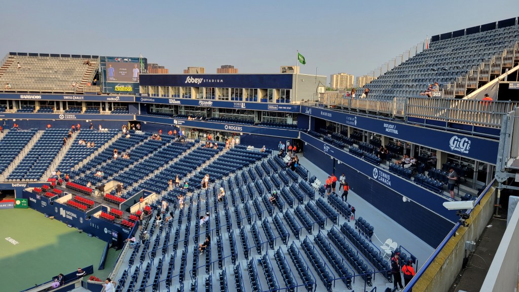 From the early rounds right through the final, Sobeys Stadium often has a good-sized crowd on hand. The event is well supported in Toronto whether it’s the Men or Women. We were there for a 7 PM Round of 16 match and the stadium was about 75% full. It did empty out for the second match, which is understandable given that one began at 9:45 PM. If a Canadian or a big star is playing, the show court can have a legit sellout. This year’s Monday final (Shelton vs Khachanov) looked like it played to 85% capacity.
