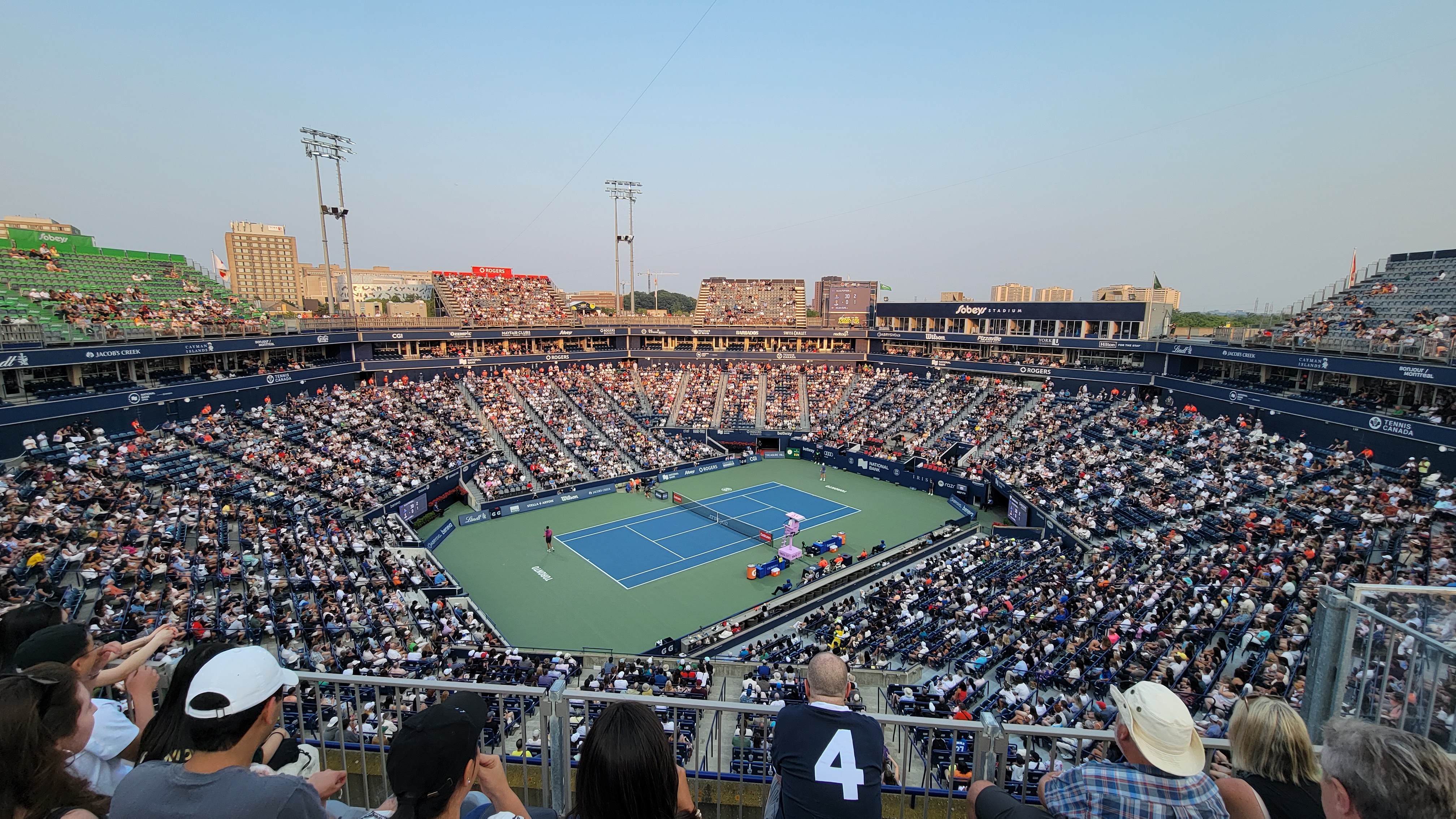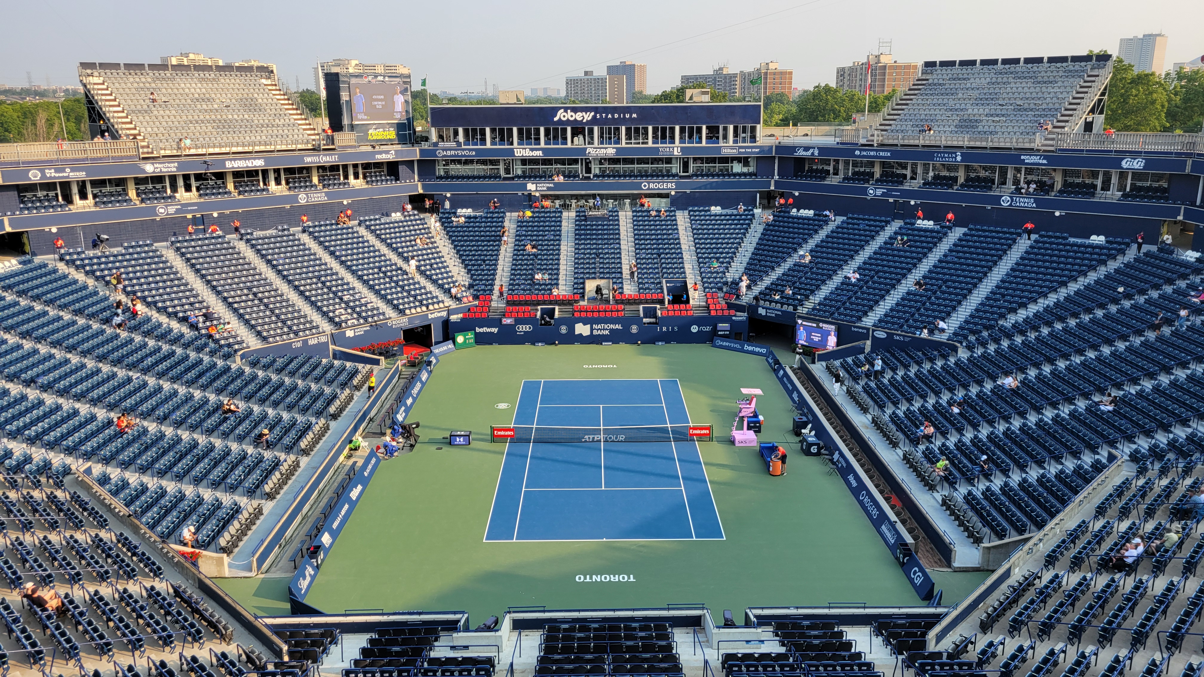 While visiting family in Upstate New York, I took the opportunity to cross the border into Canada to see a tennis tournament. Making it a day trip wasn’t the best idea as a closure of the QEW for an accident led to a 1+ hour delay. Thankfully we still made it in time and got to see a full match. The tournament was in Toronto, Ontario and this city on the shores of Lake Ontario is home to over two and a half million making it Canada’s largest. I’ve been here before and have marveled at what a beautifully clean and modern cosmopolitan city it is. In fact, Toronto is so diverse that nearly half of its population comes from outside of the country. There’s plenty to do and it is a great place to visit. The Canadian Open (now branded as the “National Bank Open”) is one of tennis’ top hardcourt tournaments as it is a Masters 1000 event. Uniquely, when the tour comes to Canada, players are split as the Men and Women go to alternating cities each year. For my visit in 2025, the ATP was in Toronto and the WTA in Montreal. This tournament has a long history, going all the way back to the 1800s. Since the Open era, it has always played host to the biggest names in the sport and in more recent times, Djokovic, Federer and Nadal have all taken home multiple trophies from Canada. This year’s event became even bigger, extending to 12 days and 96 players in the Singles Draw. It’s a questionable move that not only meant a Thursday Final, but also the Top 3 players did not come. Sobeys Stadium replaced an outdated Centre Court at the same site in 2004 and it’s a fine show court.