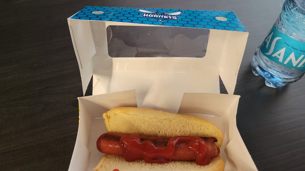 A recently revamped concessions menu supposedly added a diverse and local flavor to everything. It didn’t really show as I ventured to each stand and the offerings all pretty much could be found in Generic Arena, USA. There at least was a fair amount of things to try, including a sandwich section where they even had PB&J and Ham/Cheese. The BBQ spot (Piedmont Pit) had a Carolina flavor, especially with pork being offered in a Cheerwine based sauce. Chick-Fil-A is a fine choice too. I ended up with an old-fashioned hot dog and the size was average. For alcohol, there are plenty of cocktails to go along with beer and wine. I loved seeing that the Old Armor Beer Company had a “Stinger Ale” made for the team.