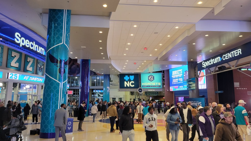I had low expectations coming in given the 14-47 record that the home squad sported and initially, that was justified with a low number of fans at the start. Slowly though they trickled in and eventually about 70% of the arena was filled. Note though that a surprising chunk were Cleveland fans, something I didn’t expect in Charlotte. Getting into NBA paid attendance is a pointless effort given inflated numbers and variable building capacities. It’s fair to say Charlotte is not a top place in the league in terms of being crazy for the team. The state is much more into college basketball and even if the Queen City doesn’t sport a team in a Power Four conference, there still is much love for the college hoops with plenty of alumni (don’t forget we’re also close to the SC border and thus Clemson / USC). The Hornets just don’t resonate beyond the local area and even at that, Charlotte is lower on the totem pole in a city of transplants. One thing to keep mind though is that they were able to get their team to return after a jerky owner moved them and that’s a testament to fan base being here. Winning will get a group of bandwagoners interested and the Hornets have not even been able to tap that group yet. For now, the fan base has plenty of Tweens who went bonkers every time LaMelo Ball touched the ball. Charlotte probably is somewhere in the lower third of NBA Team “fandom” and that comes from a general feel from around league fan circles and the number of followers / contributors on social channels.