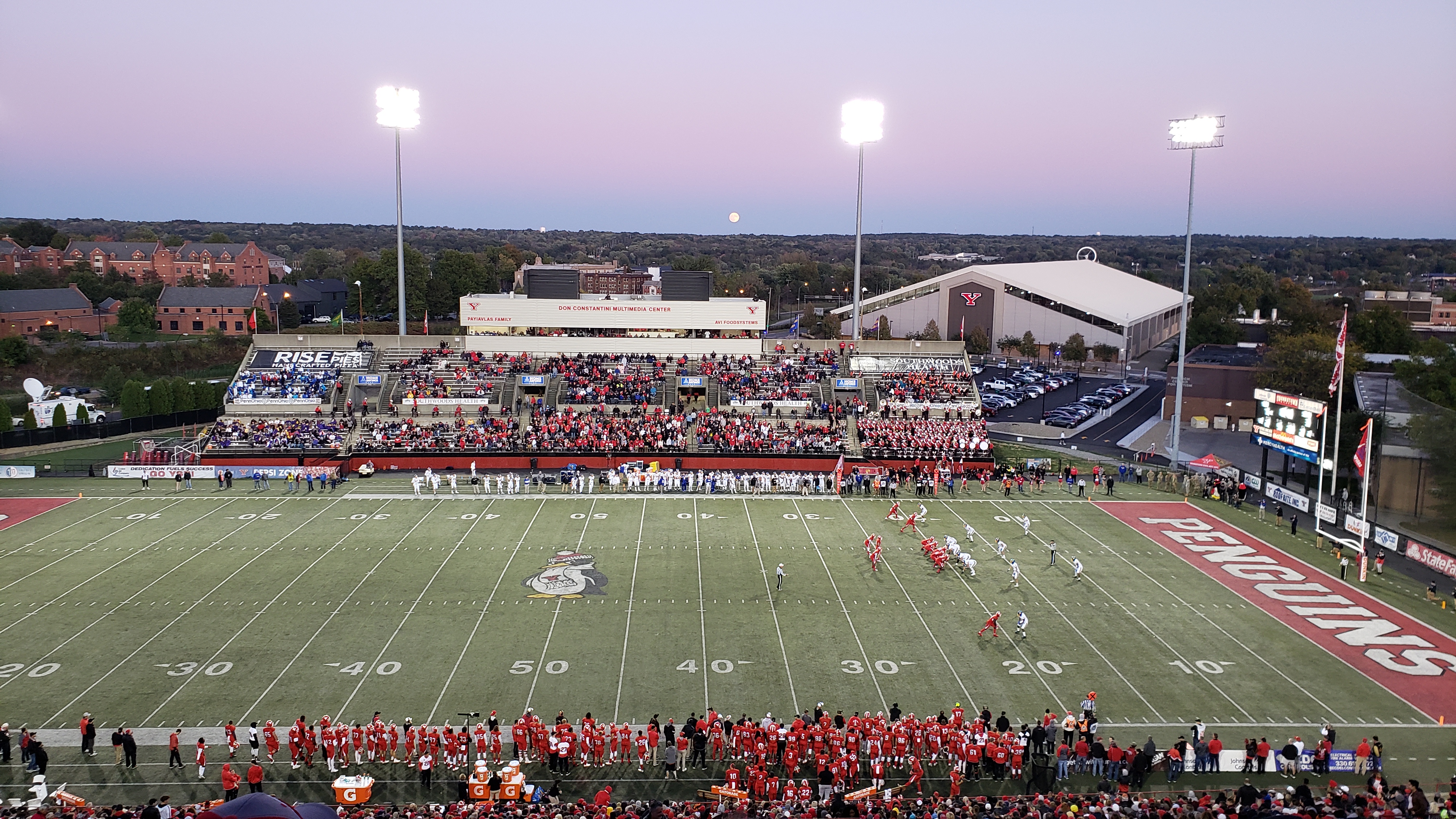 There was a palpable buzz walking to the stadium that this was going to be a little different than your normal FCS game. As tailgating was abundant and many were flocking to the stadium in their red, white and black YSU shirts, it was evident that the Penguins get good support. Year-after-year, Youngstown State is ranked #2 or #3 for conference attendance and within FCS, they are usually Top 15. It’s not all roses however, because Stambaugh Stadium holds around 20,000 and the stadium is almost never full. The game we saw featured the #3 team in the country, on a seasonable Saturday Evening, during homecoming and there wasn’t really an uptick in attendance as I estimated 10,000 to 11,000 on hand. Many of them also left with six minutes remaining and the final result not a foregone conclusion. The last time the stadium was sold out was in the year 2000. Home playoff attendance in the Penguins’ last appearance (2016) averaged 6,700.