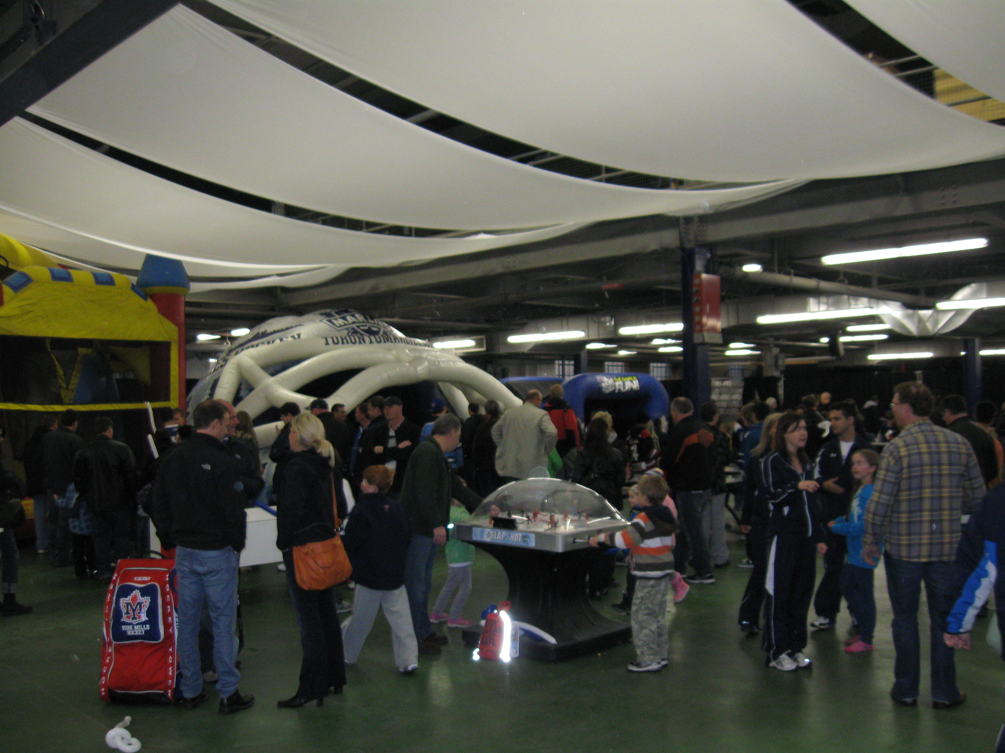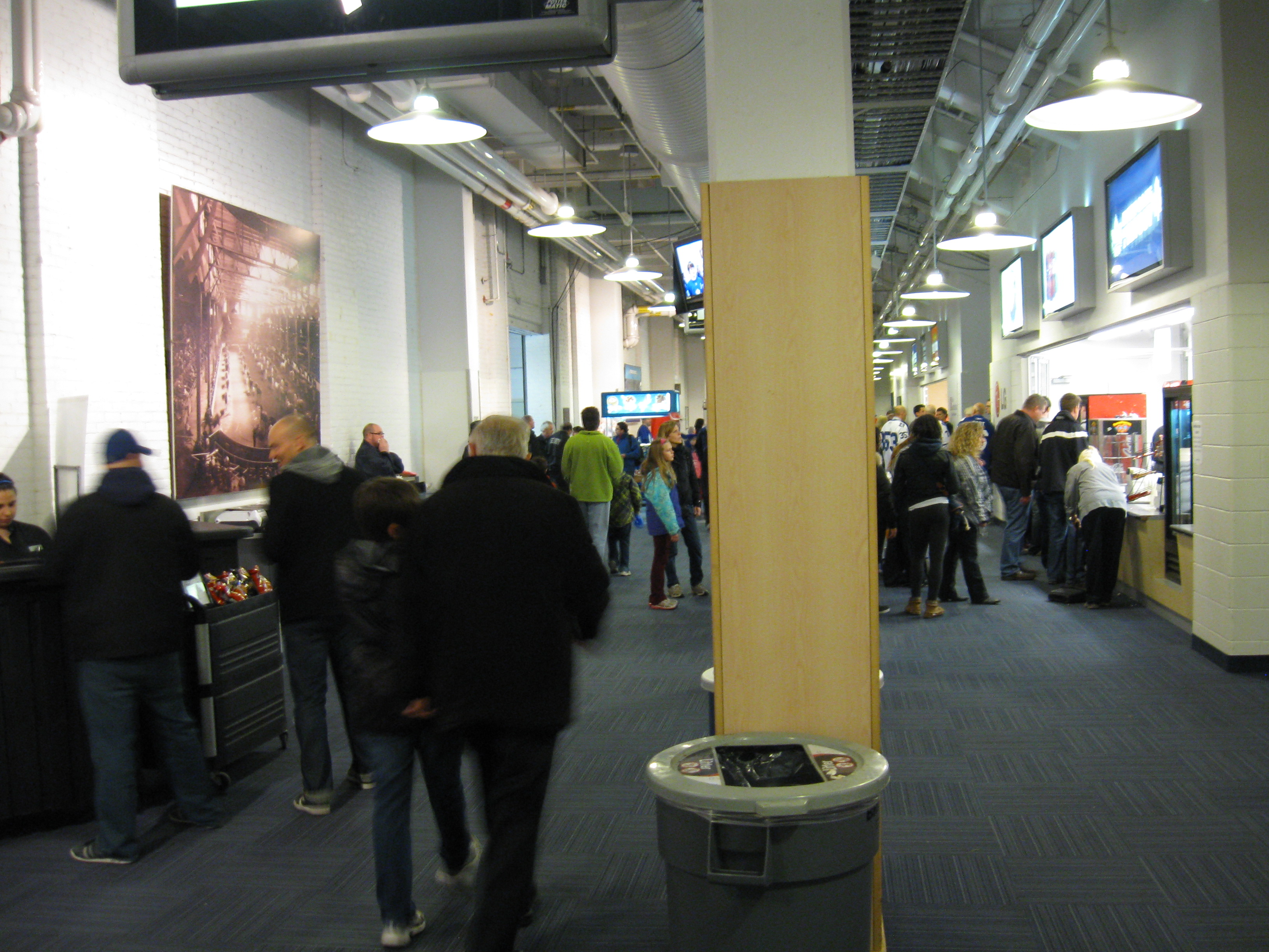 Before walking through the turnstiles, the Marlies made use of an annex off of the concourse and turned it into Marlies’ Alley. Great idea and the set-up is ideal for families as there are a ton of games for the kids. The concourse surrounds 3/4ths of the arena and is tight when a decent sized crowd shows up. At least there are also a few open areas with couches and standing tables. Lots of blue out here and various Marlies logos and murals are painted on the walls. The Leafs should follow the Marlies and liven up their concourses with some history like the Marlies do in their arena as there are numerous displays.