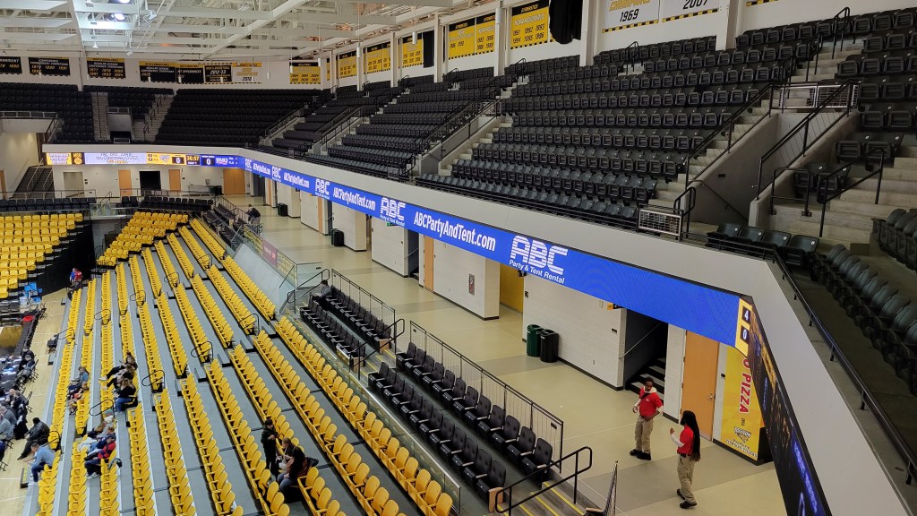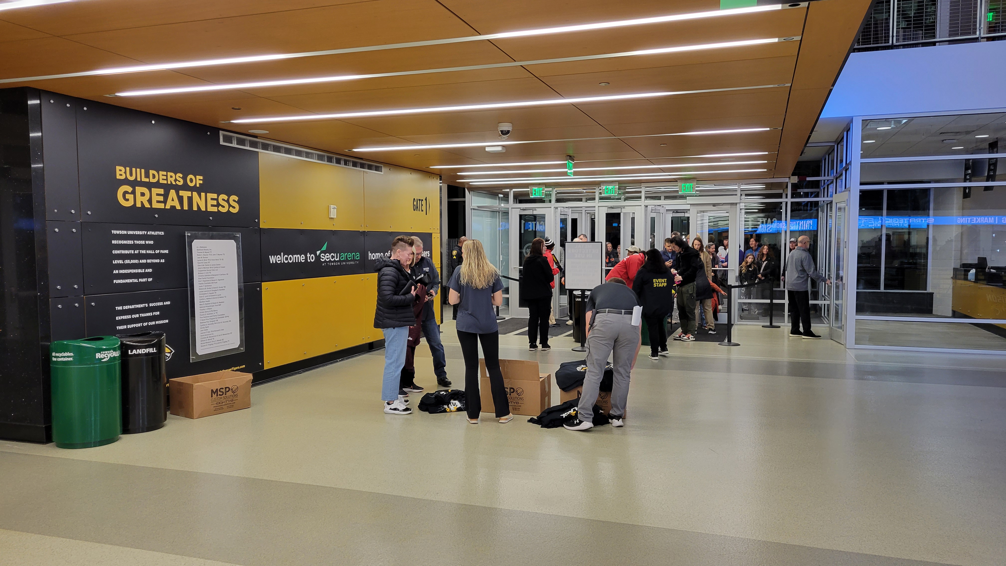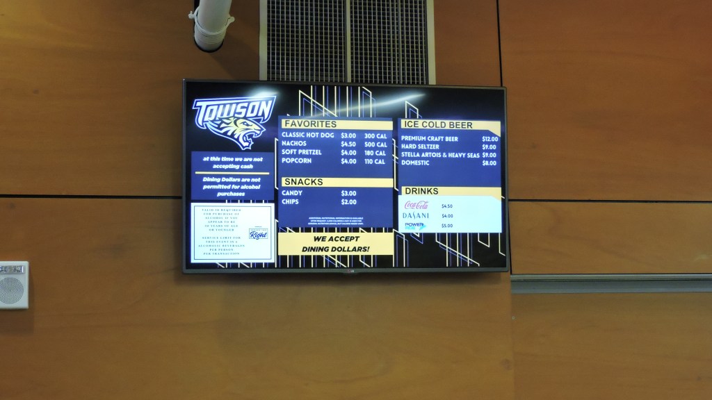 There is friendly interstate access to Towson via I-83 and I-695, but the location is not right off the exit. Needing to go a bit deeper into town, it’s easier to use Bosley Ave and avoid the center of Towson and the traffic circle. Parking right near the arena is in Lot 8 and with less than 350 spots, it is likely to fill up quickly. I arrived an hour before gametime to get a spot and when walking to the arena from here, make sure to cut through the Towson Center so you don’t have to walk around the connecting building. Because the arena is up on a hill, other parking options are sub-optimal. Once staff closes this lot because it is full, the next option is on the other side of the football stadium. There’s even a chance that isn’t enough to hold everybody and the final option is a ridiculous 15-minute walk to the Union Garage. Not sure how often that’s needed, but I did see a handful of people walking down Osler Drive after the game. Get here early. As for traffic, be mindful of weeknight rush hour in the area, otherwise local traffic is fine and police help direct and expedite after the game.