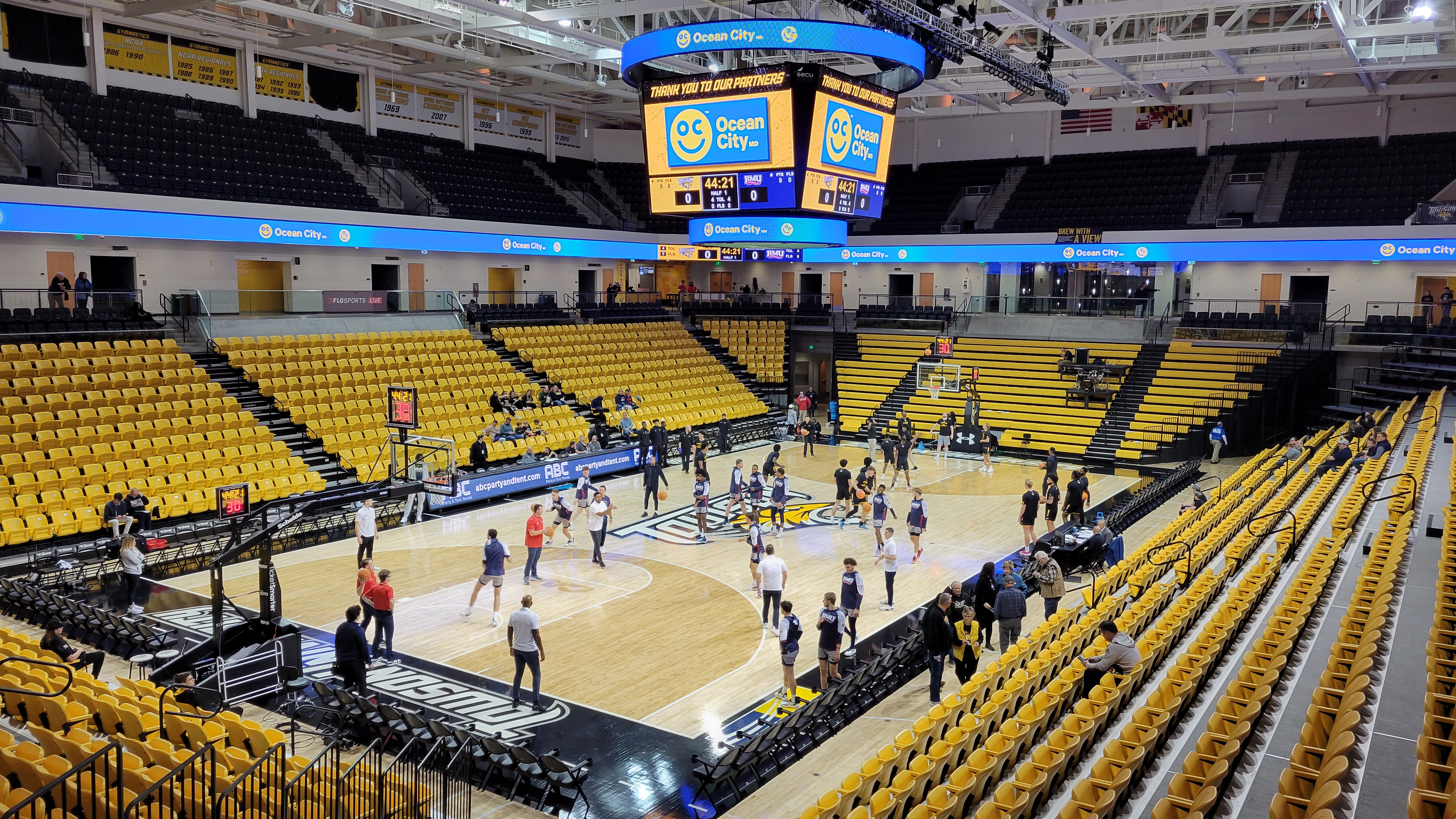 I was nervous this game wouldn’t happen because as I was touring the arena, I noticed something lying on the floor. It was the rim. Yup, the rim as a dunk during warm-ups took it clean off the backboard. Credit the Towson staff, who brought the apparatus back for repairs. Just before the ball was going to tip, something was a little wonky with the backboard and I had that nervous feeling as 5 people were standing looking at it with the refs. Thankfully it was nothing a socket wrench couldn’t take care of and after a 15-minute delay, the game got started…..Boooo to the security at the metal detectors who absolutely hated her job. The lady I had could not have been more unhappy to be there and she had to also draw out the process making things obscenely slow. The placement of this thorough check right near the entrance leads to a staggered and annoying entry into the arena…..The Baltimore Blast of the MASL, an indoor soccer fixture in the area, moved from downtown to Towson’s arena in 2017.