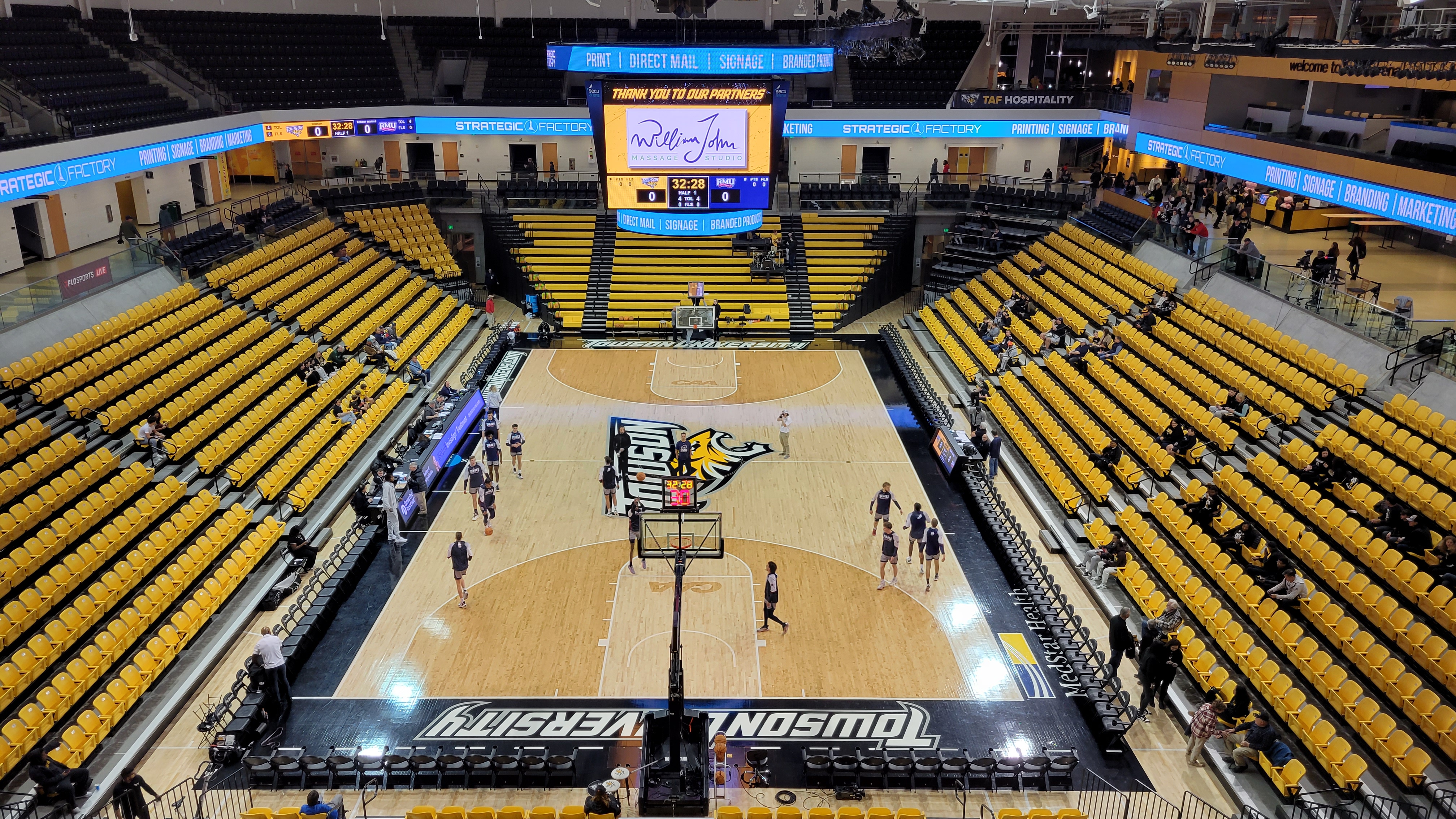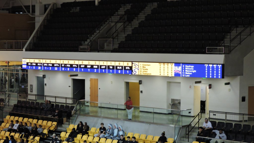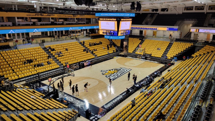 The dispersed students throughout the bowl did not help the atmosphere. The group that did help was the pep band as they were into it the entire game not just with their instruments, but also their voice. Cheers and chants were clever and helpful (their misguided shot clock forced RMU into a bad shot twice). The rest of the crowd was eh and I say that because the final 5 minutes of the close game didn’t feel much different than the first 5 minutes. They didn’t have much energy and only the leading bucket with under a minute generated something that you could call as loud. Otherwise, baskets got applause and dunks got a louder cheer. This is an arena that has the potential to be very loud given the acoustics and credit to the band for helping to show that.