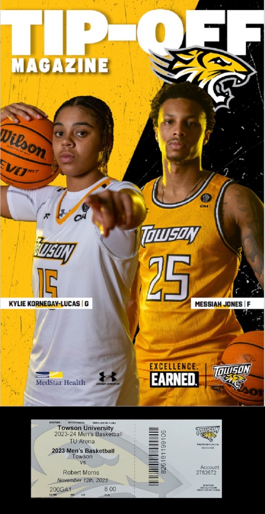 It was the home opener for the Tigers and this matchup led to a lower bowl that was half full and an upper bowl that was mostly empty. That probably produced a turnstile count around 1,500. Not great, but opponent, time of year and time of day (Sunday 7 PM) didn’t help. Students staggered in and I still saw some arrivals 30 minutes after tip. They were out in decent numbers and given the arena proximity from the dorms, I thought that it was a good showing from the kids. With many sporting options and other colleges in the area, Towson has a fan base predominately tied to the school and not too much coming from the town or surrounding area. In terms of attendance, the team is in the middle of the pack within the CAA and that’s also the case within the context of all Division I teams (ranking 178th out of 363 teams last year).