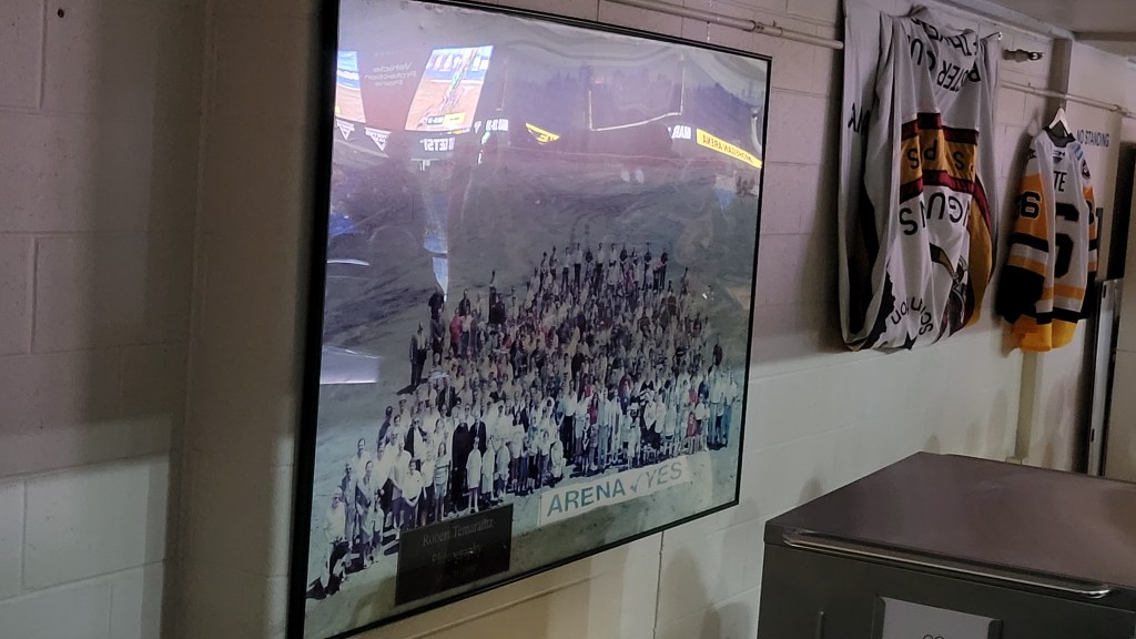 Tucked away in a corner of the arena are plaques for the 7 members of the Team Hall of Fame. They’re nice displays, just easy to miss. Banners for conference and division titles are found in the rafters and the low ceiling means that some beams get in the way of fully reading each one. Notably prominent are the “Arena Yes” displays. I had to do some research and these are in recognition of the arduous, dedicated efforts to finally get a large indoor venue built in NE PA.