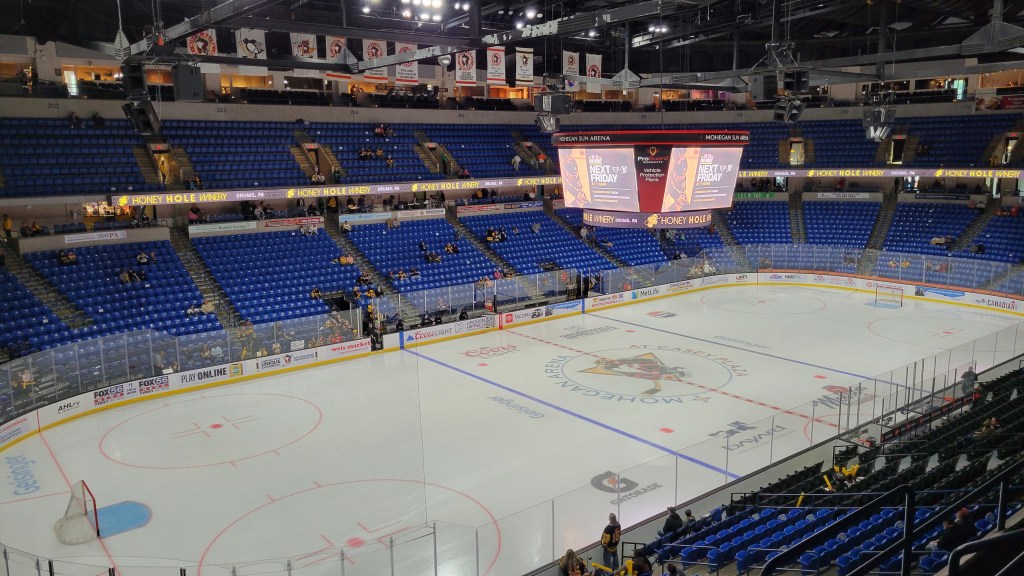 Like everything else, ticket prices have gone up a lot in the AHL. Here in Wilkes-Barre, prices are comparatively lower when looking at the averages of nearby rivals (Lehigh Valley, Allentown, Syracuse). A ticket runs between $24 and $36 and there’s some minor increases whether for fees or day of game. Really nice is that there is no parking charge for hockey games at the arena and even though they say “it’s included” in the ticket cost, those prices being comparable or cheaper to other places makes it seem like parking is free. As for concessions, it’s $11 for a burger with chips, $5.50 for a Hot Dog and a whopping $12.50 for a 16oz beer.