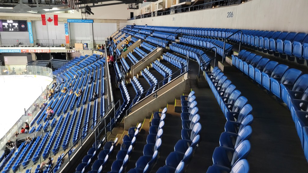 Many non-established teams follow a similar trend: fan support starts amazing as the team is the new kid on the block, then the honeymoon phase slowly wears off. The first decade here in Wilkes-Barre saw sellout streaks and packed houses for hockey both in the regular season and playoffs. Team support may still be good with many fans of the team, but attendance has dropped below average for the AHL as WBS reaches it’s 25th anniversary. Last season, the team was 23rd out of 30 in terms of attendance and it wasn’t a great start when I attended the 2024 home opener. The building wasn’t even close to half full (note Penn State football was playing at the same time). Nowadays, team support I’d say is below average for the AHL. I wonder if them being so closely tied to the Penguins hurts them a little since there probably are Flyer fans in the area (though from what I gather, many became Pittsburgh fans because of the Baby Pens). As an outsider, it’s frustrating that there is no regional identity and things like the mascot, drum tradition and even horn are taken from the parent team. Playoff attendance the last couple years has been near the bottom of the standings with averages between 3,000 and 4,000.