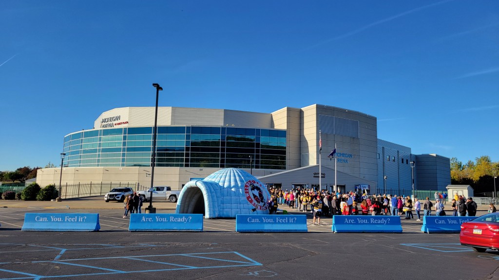 When I first began these journeys, it took me a little while to hone in on the best time to make an initial visit to a facility. Playoff games are great, but it skews the atmosphere as I’m curious as to how a fan base is on a more typical occasion. Somehow, 14 years went by before I could finally experience that in Wilkes-Barre as my stops to Northeast PA in 2004 and 2010 were during the Calder Cup Playoffs. Not to say they weren’t memorable as the team won both affairs in front of a raucous crowd. The Wilkes-Barre / Scranton Penguins are a natural fit in the AHL, but they weren’t born until 1999. Despite being closer to a rival (Philadelphia) than their affiliate (Pittsburgh), the Baby Pens have been a success. Plenty of future NHL stars have come through town and in terms of on the ice results, the team started incredibly well. They made the Calder Cup Finals 3 times in their first 9 seasons (though with no titles). Since then, WBS cooled off as the team has won only a single playoff series from 2016 – 2024. Wachovia Arena (since renamed) is one of my favorites in the league as this place built in 1999 is great for watching hockey.