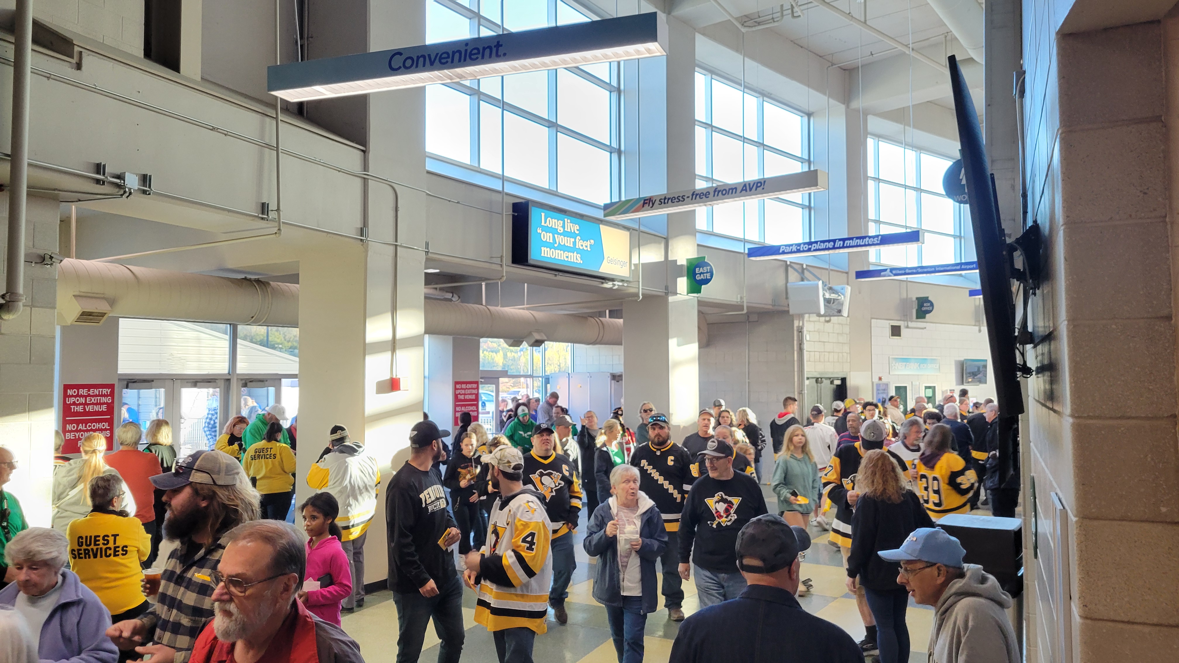 I-81 is the north-south running interstate that serves the region and the arena is right off Exit 168, making for an easy arrival after a few turns. If coming from an east-west direction, I-80 can be used to hook up with 81, though some may opt to use I-476 and the hilly Rt. 115 when coming from New Jersey. Back to the arena, it is surrounded by a huge parking lot which will hold all visitors. It wasn’t completely paved during my first visit, but upon return everything was smoothened. They’ve also made egress better as the initial free-for-all after the game towards Arena Drive wasn’t as chaotic. To avoid a slow-go near the entrance to I-81, I’d suggest taking the back way and go left out of the parking lot to Arena Drive and then right onto Mundy Street. A few more roads will then lead to I-81 further up.