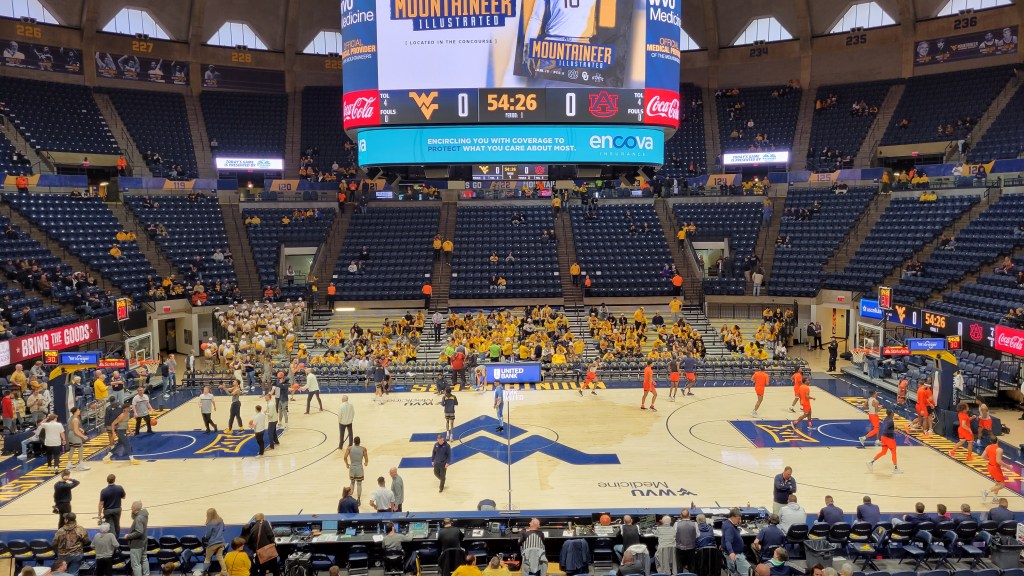 It was an announced sell out and the optics were favorable for a relative big game as it was a weekend, an SEC / Top 25 opponent and a good, but not great WVU team. Empty seats were few and far between as I estimated the Coliseum at about 95% full. Late game saw many leave, which was similar to the football game and something I don’t understand and get frustrated by. Otherwise, fan support is really good and they love their basketball in Morgantown. Conference season features crowds near or at capacity and there were even a few non-conference games that I was impressed with the turnout (like a December game vs UAB). Last season, the team was in the Top 30 for the NCAA’s attendance rankings.